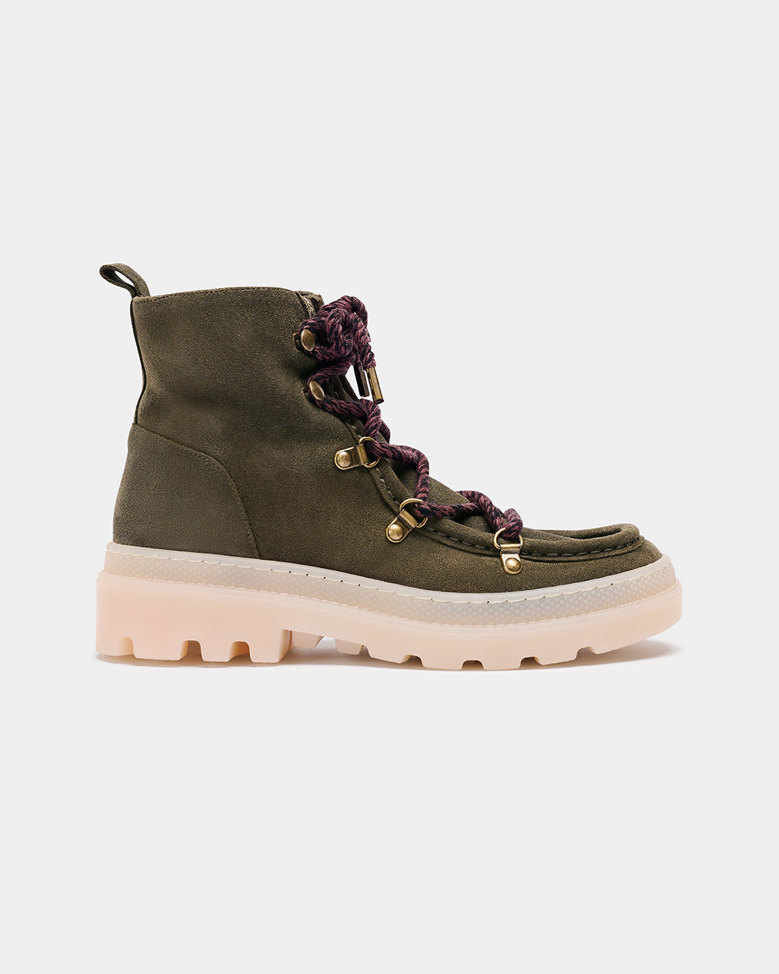 KAUS is a low-cut Wallabbe-style boot, inspired by mountain footwear. The upper is made of water-repellent split leather. It features a thick TR track sole. Contrasting cotton lace closure. Fabric lining. Removable foam insole. The height from the floor is 3.5 cm for greater comfort for your back.