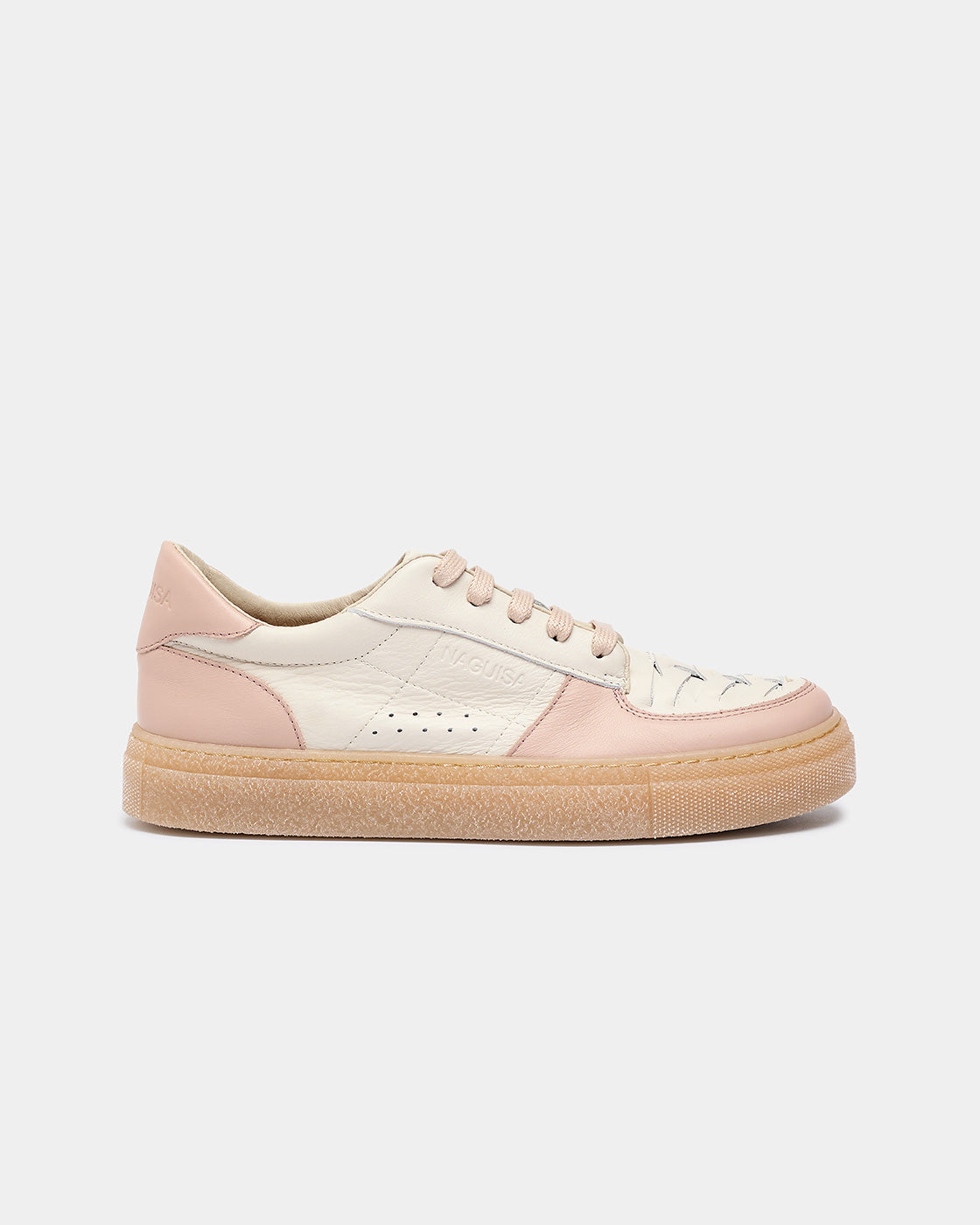 BAMBA is our perfect everyday basic sneaker. The uppers are made of cowhide leather in a contrasting color with suede. A suede detail at the toe. The upper features cotton laces that match the upper. The sole is made of non-slip crepe rubber. The lining is made of natural cotton fabric. The removable foam insole is 2.5 cm high.