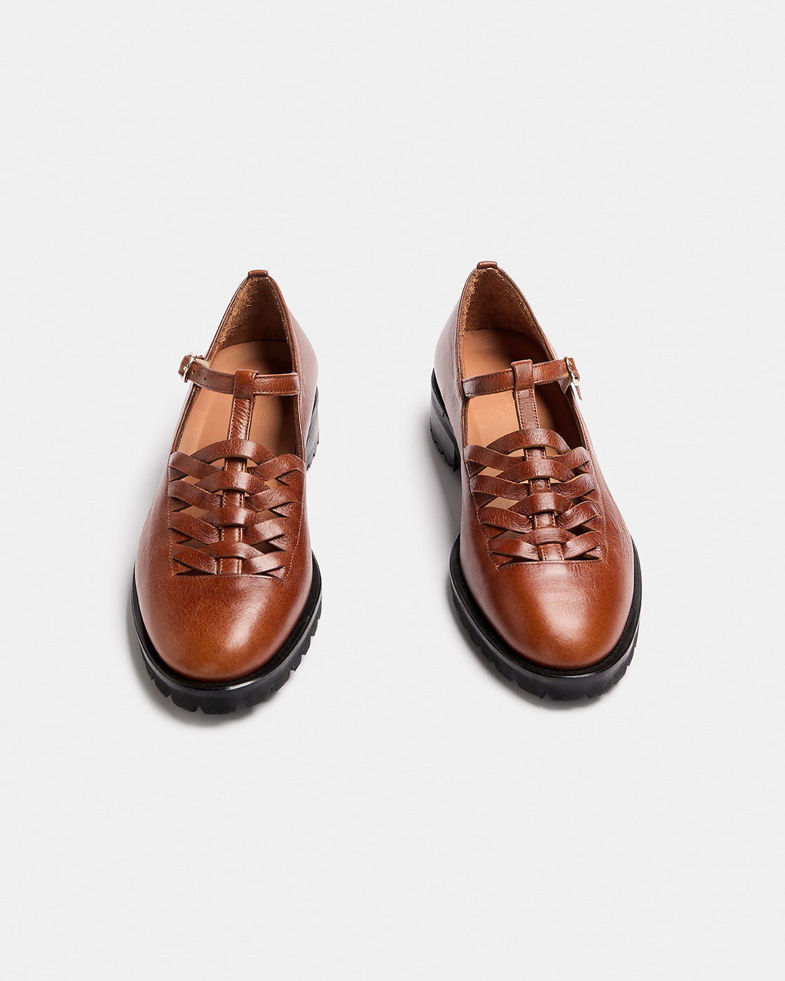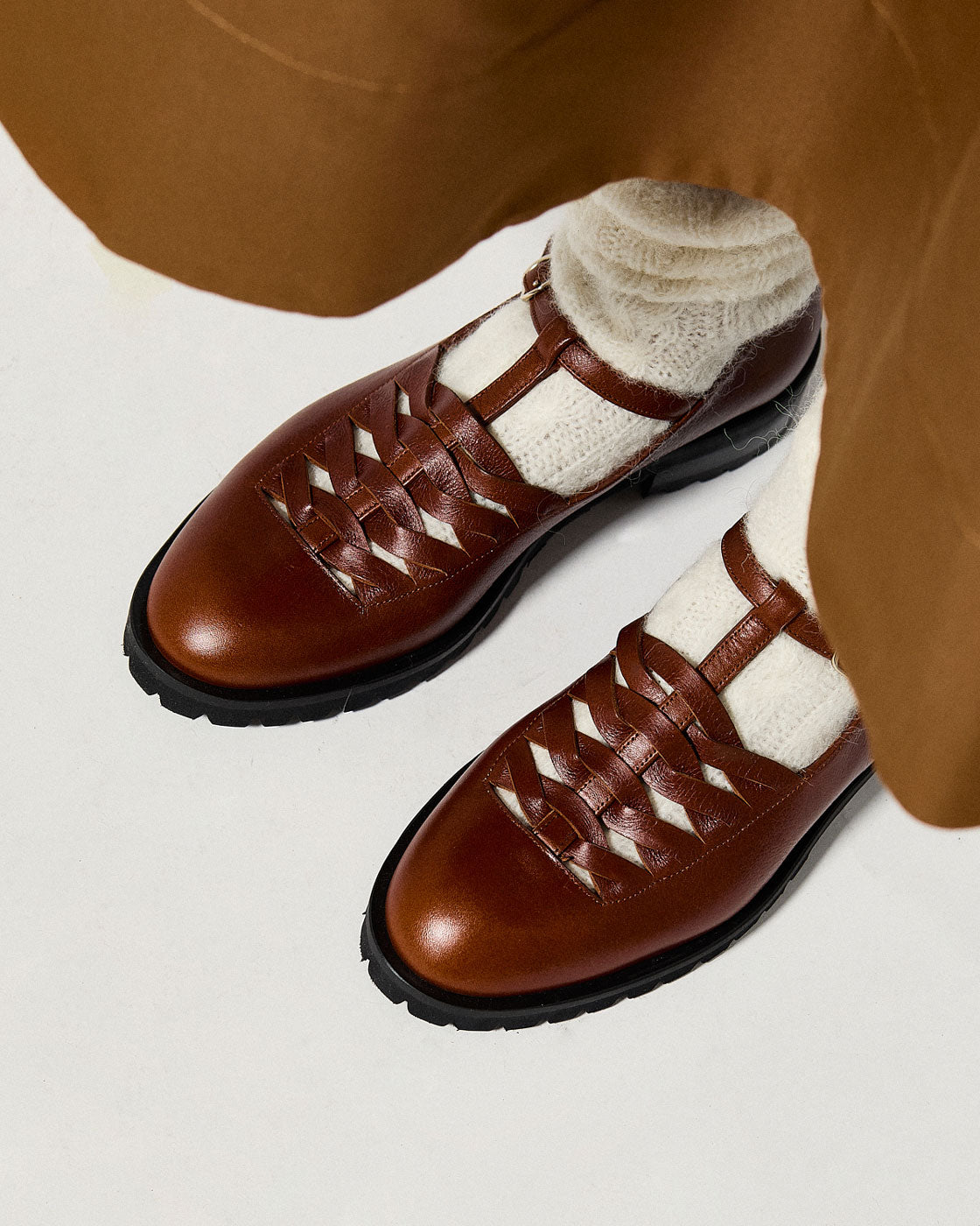 IMAI is a T-shaped Mary-Jane shoe. The uppers are made of cowhide with a suede detail at the toe. Round toe. Natural cowhide lining. Removable foam insole. Non-slip rubber tread sole. The total height is 3 cm for greater comfort for your back.