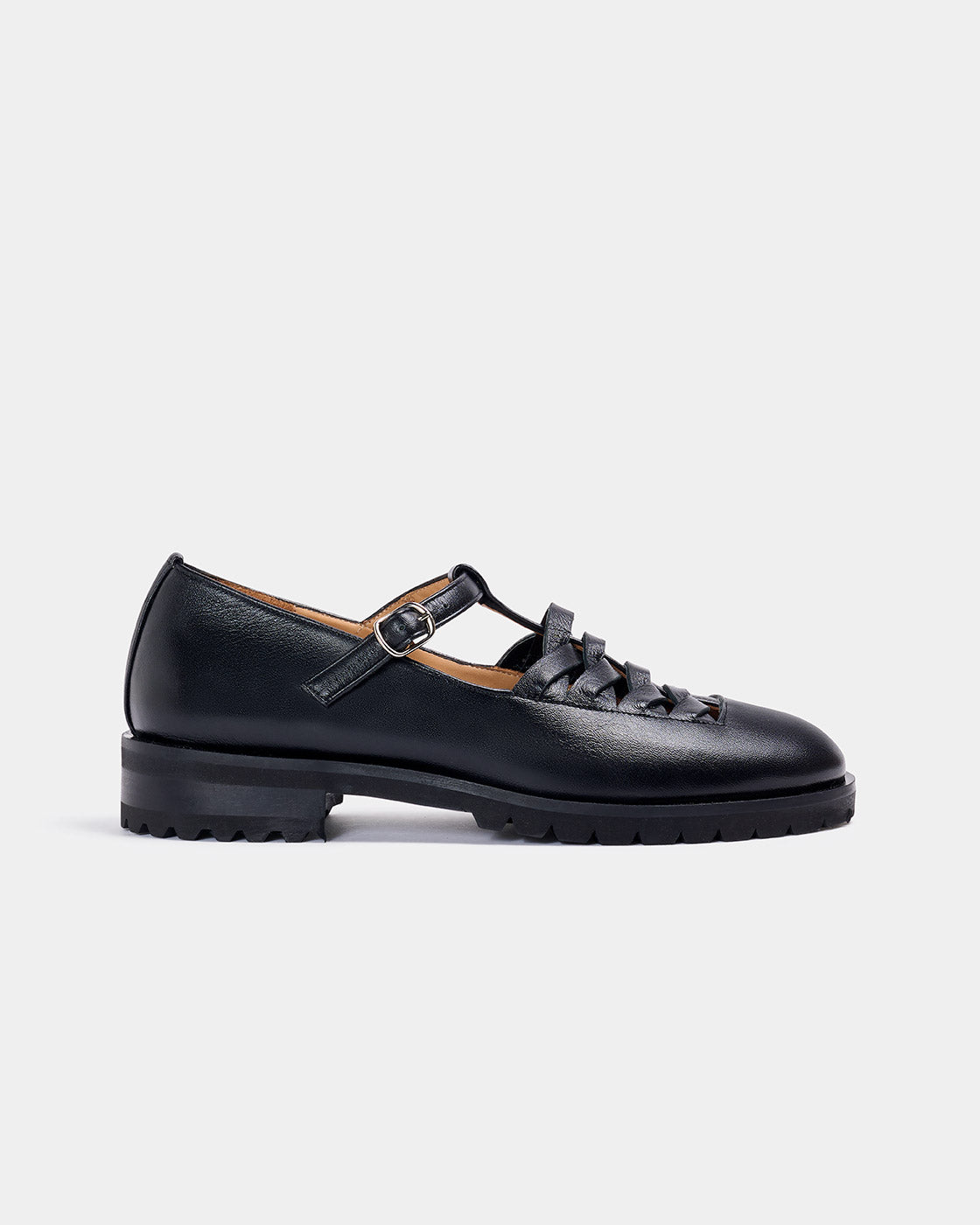 IMAI is a T-shaped Mary Jane shoe. The uppers are made of metallic sheepskin with a suede detail at the toe. The round toe features a natural cowhide lining. The removable foam insole features a non-slip rubber tread. The total height is 3 cm for greater comfort for your back.