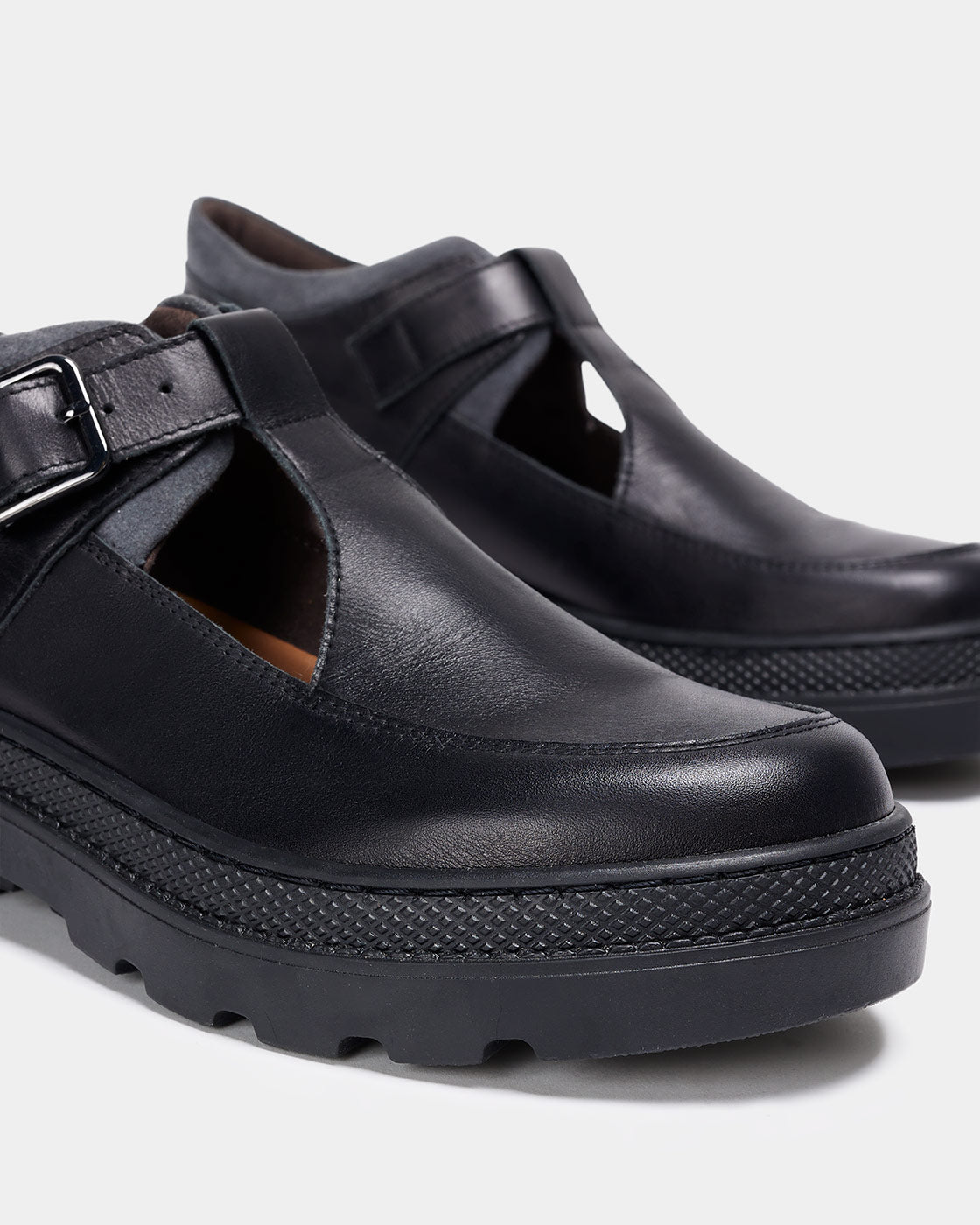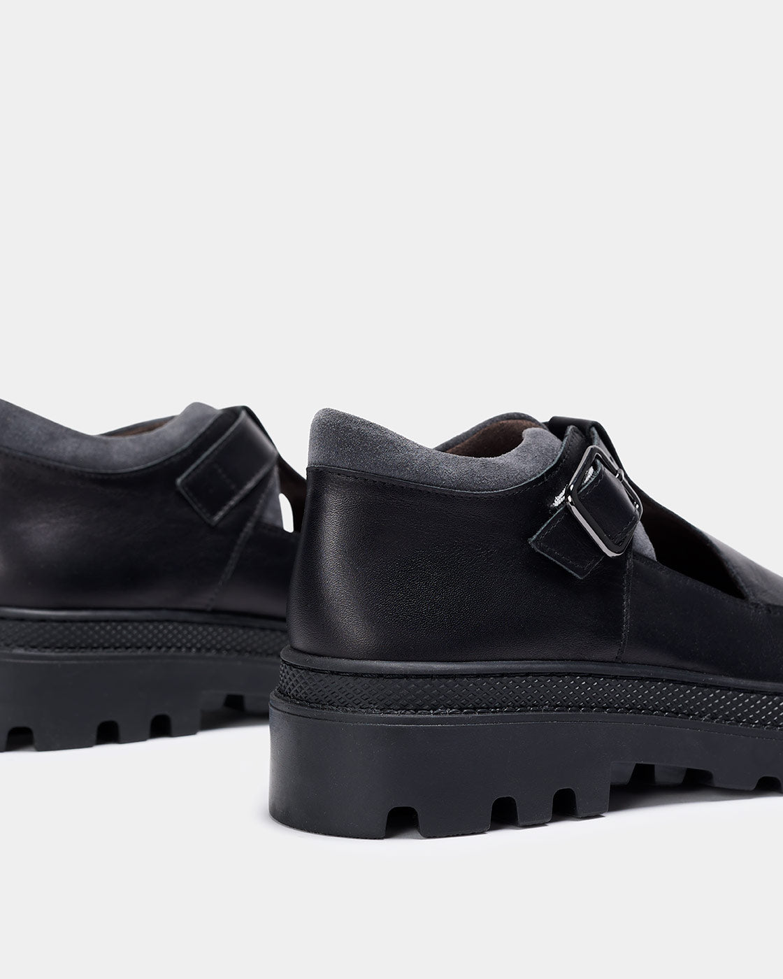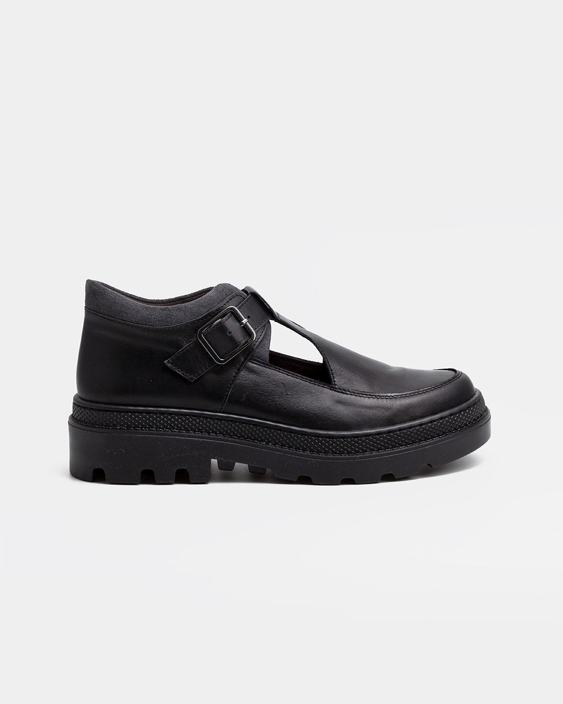 LYRA is an open-toe T-bar shoe. The upper combines cowhide and suede. It features a thick TR track sole. It fastens with a metal buckle. Fabric lining. Removable foam insole. The heel height is 3.5 cm for greater comfort.
