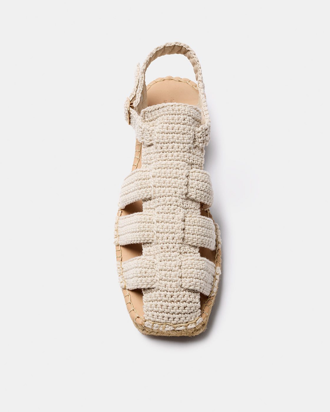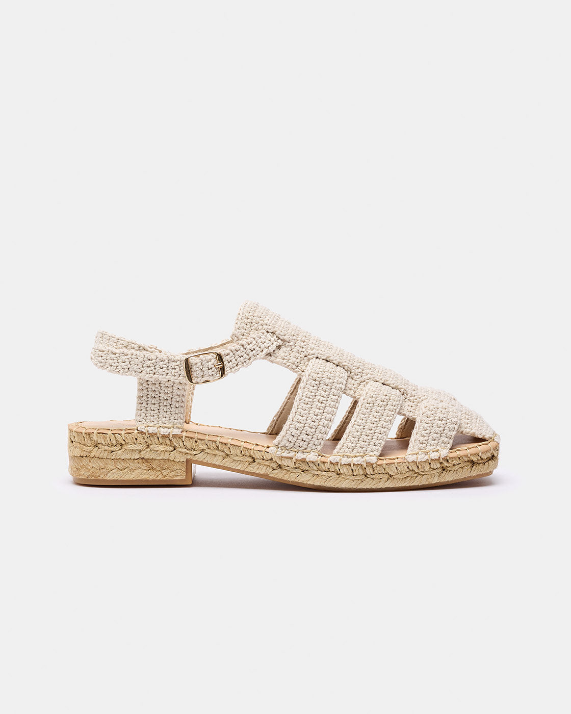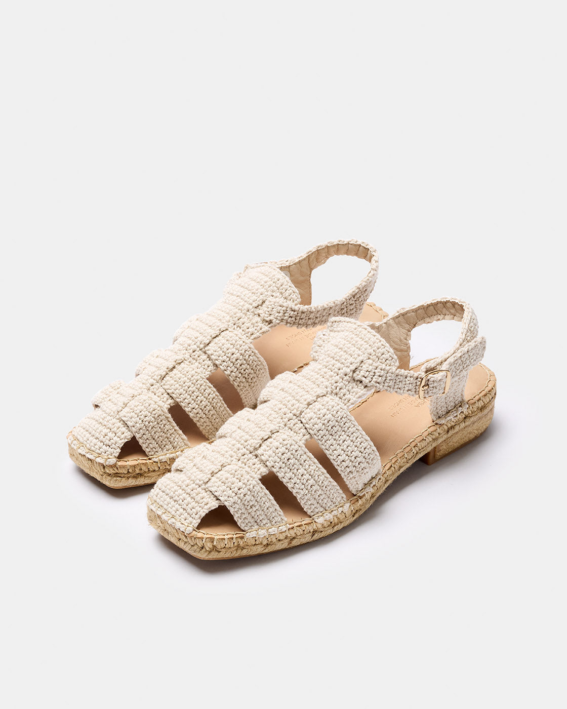 Bermeo is a crab-style espadrille inspired by our Sativa model, handmade with cotton thread. The lining is 100% breathable microfiber. The insole is padded with foam and lined with natural cowhide to allow your foot to breathe. The square-toe sole is made with a simple two-tone jute braid. It features a small heel and a non-slip rubber sole. The total height is 3.5 cm.
