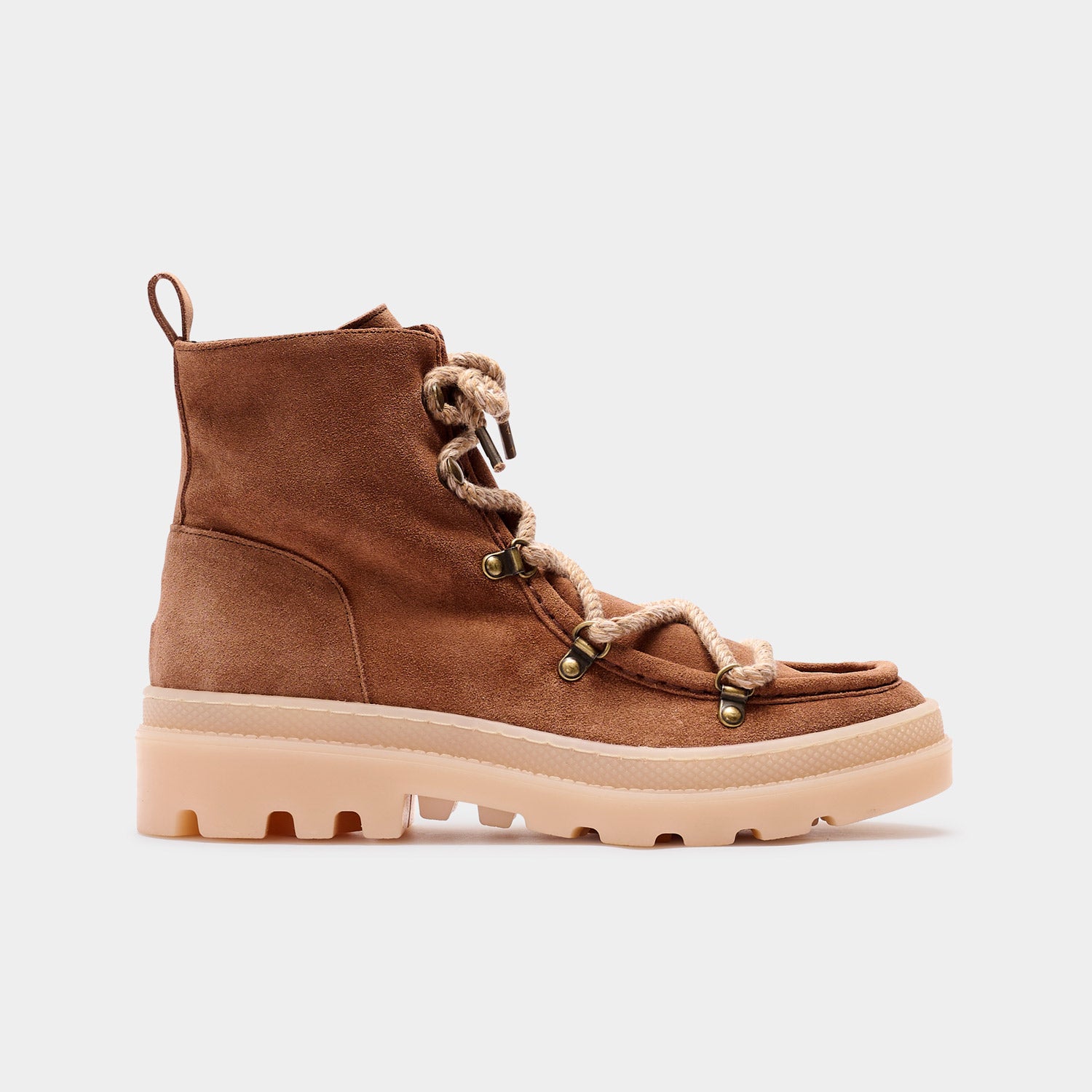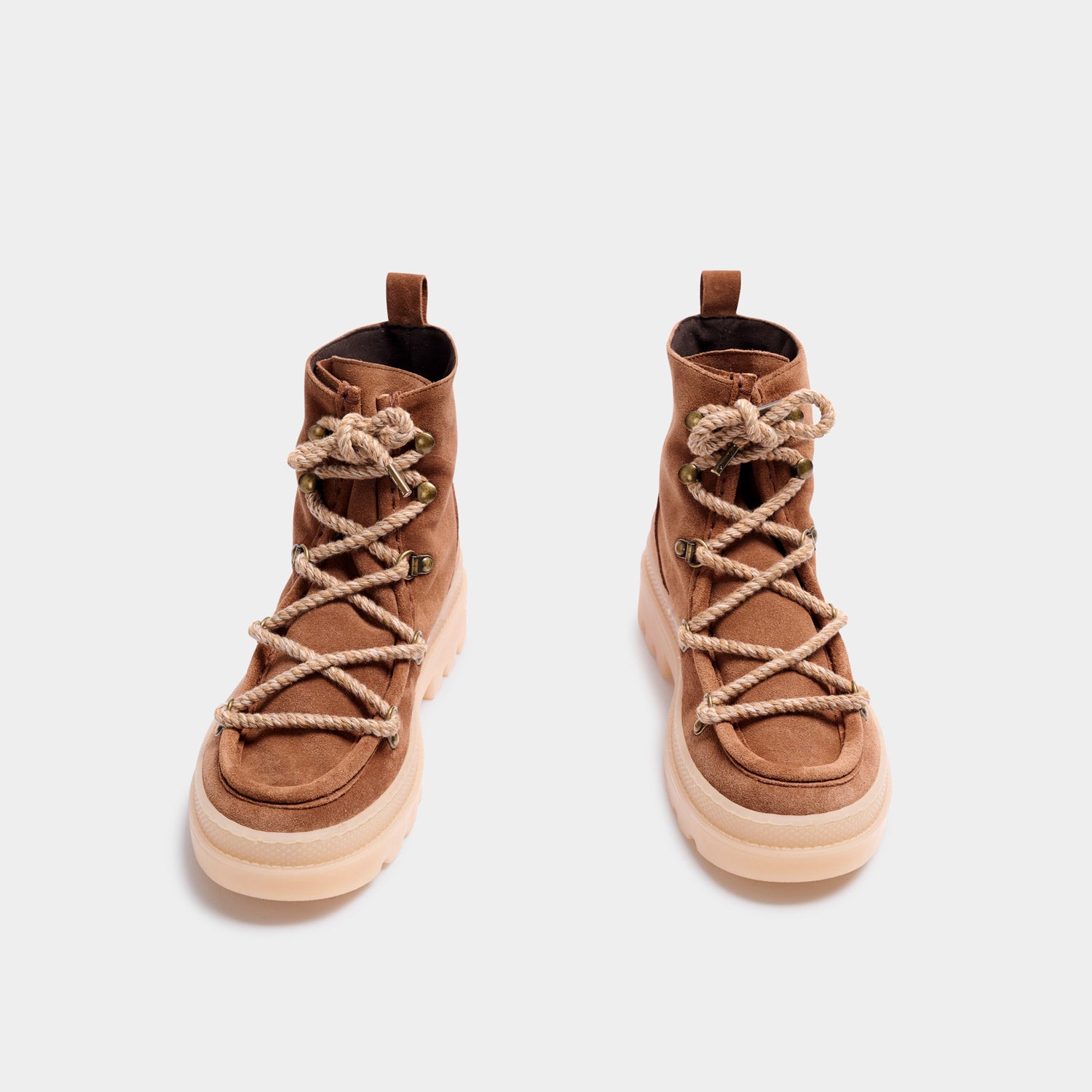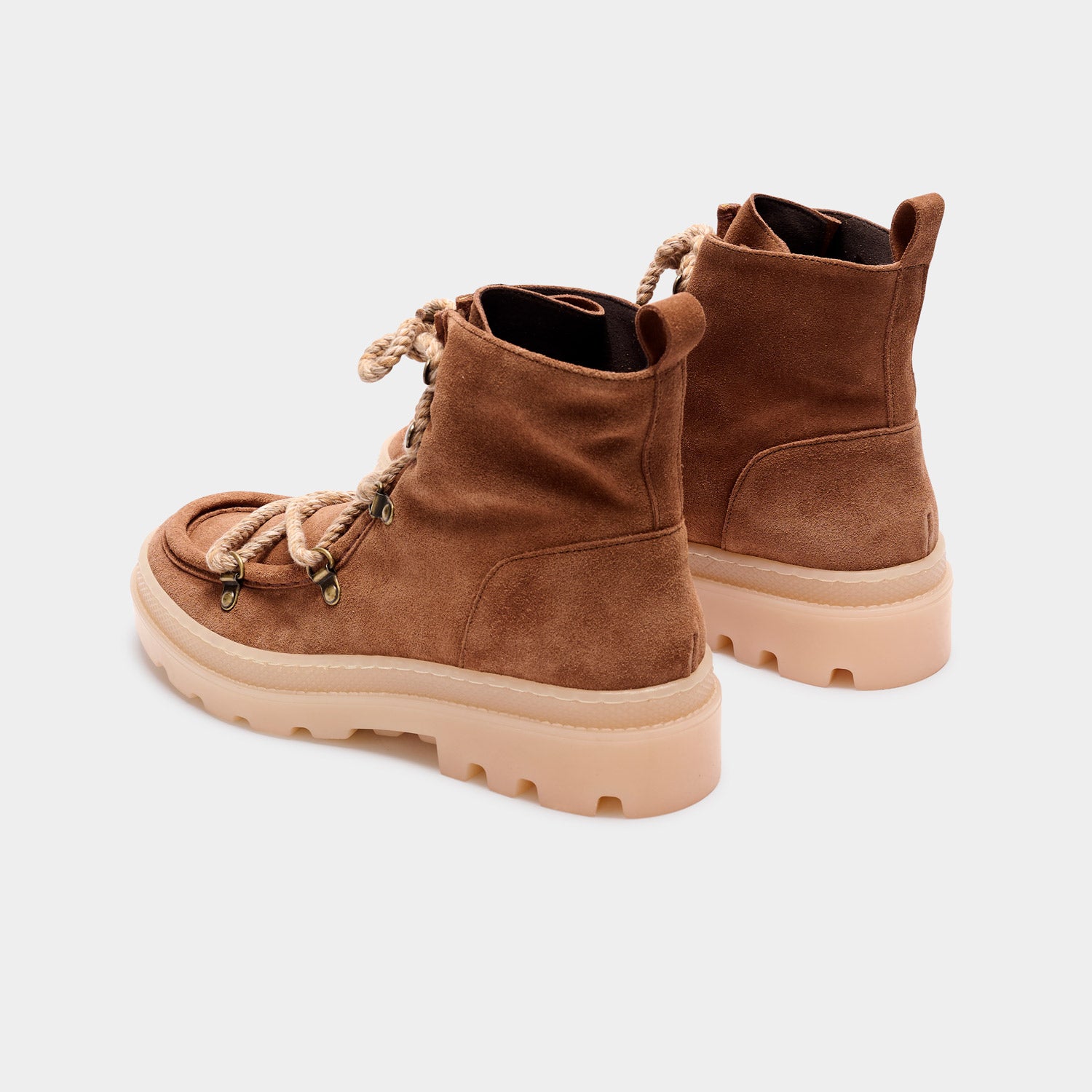 KAUS is a low-cut Wallabbe-style boot, inspired by mountain footwear. The upper is made of water-repellent split leather. It features a thick TR track sole. Contrasting cotton lace closure. Fabric lining. Removable foam insole. The height from the floor is 3.5 cm for greater comfort for your back.