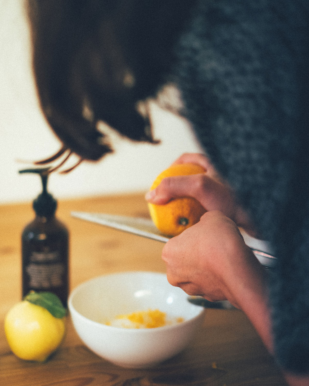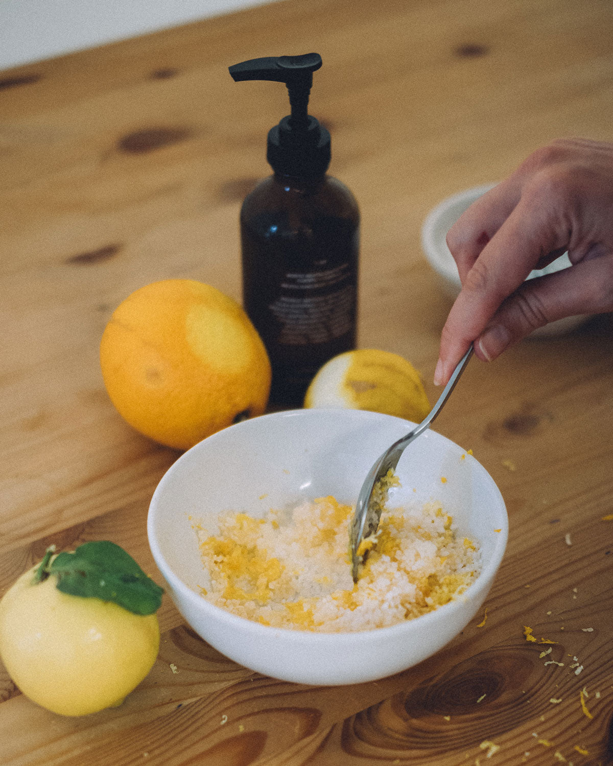 -1/2 lemon zest and 1/2 orange zest, antiseptic properties, helps us keep our feet clean and free of impurities, its aroma brings us joy and calm.