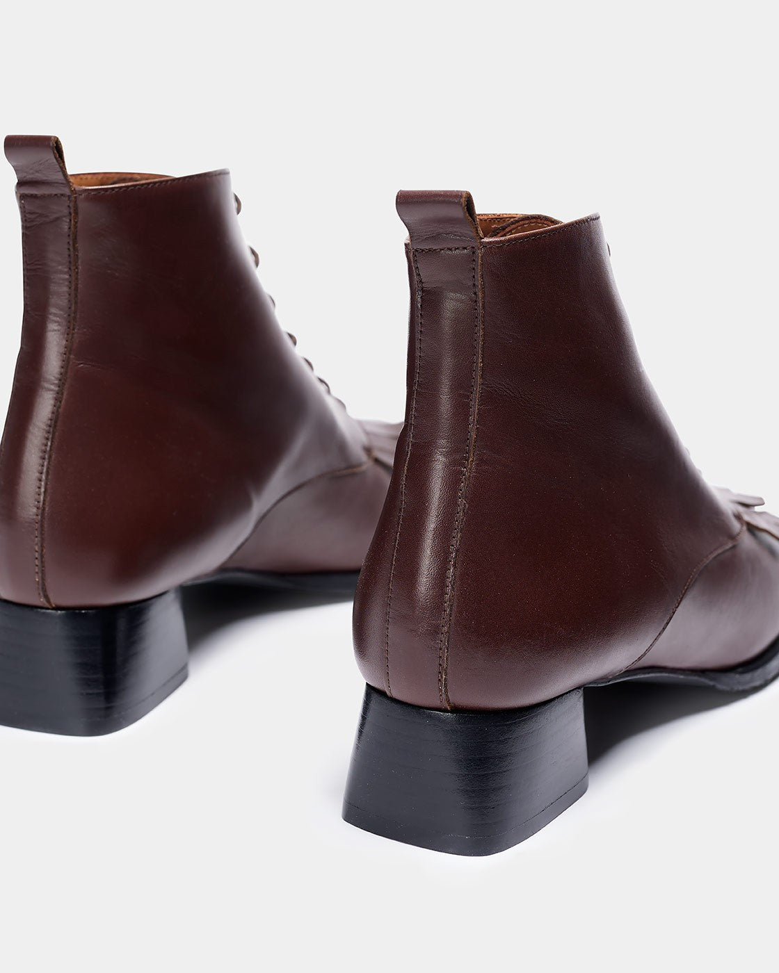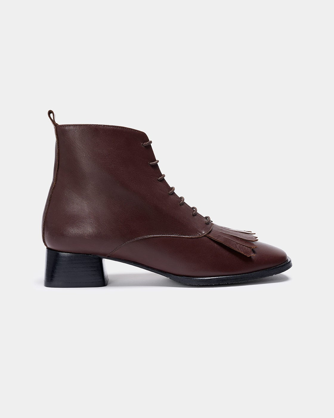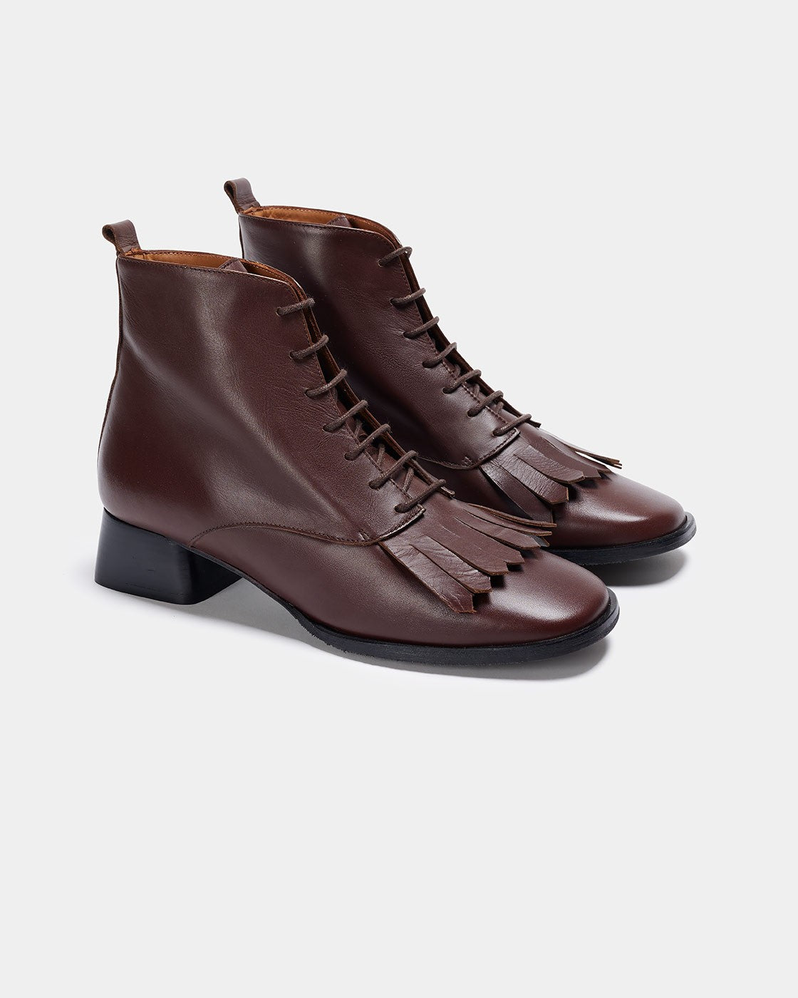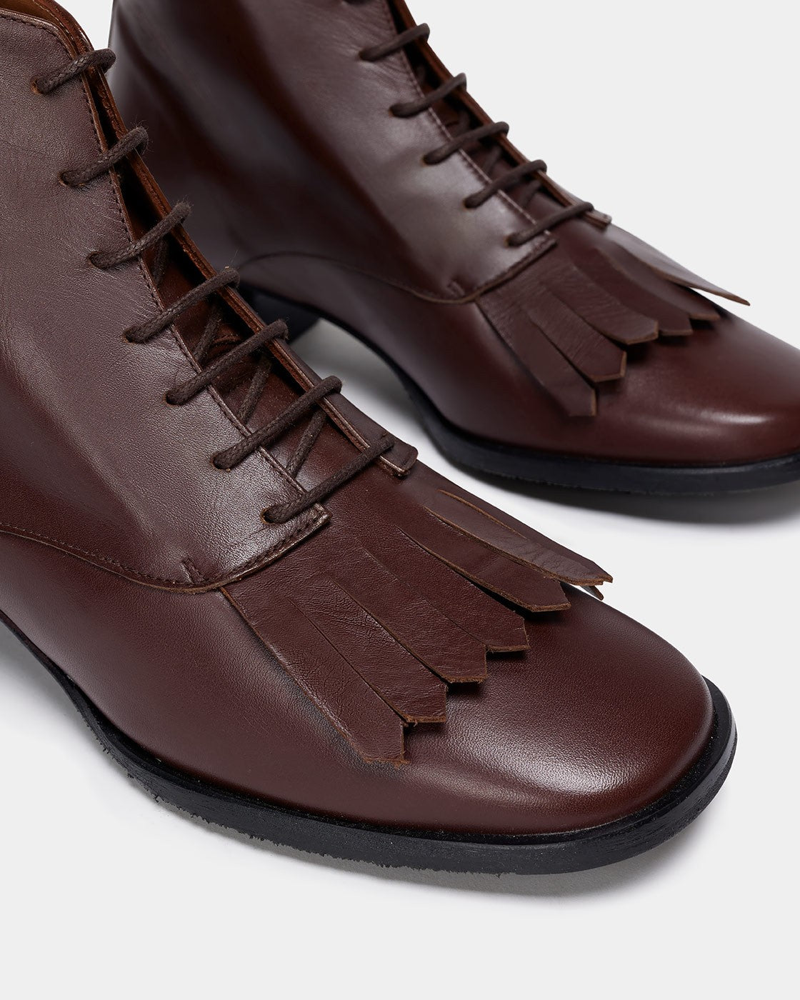 CAELUM is a blucher-style ankle boot with a low shaft. Fringe detail at the toe. Cowhide leather uppers and waxed cotton laces. The lining and insole are made of cowhide leather for better breathability. Heel height of 3 cm for enhanced back comfort.