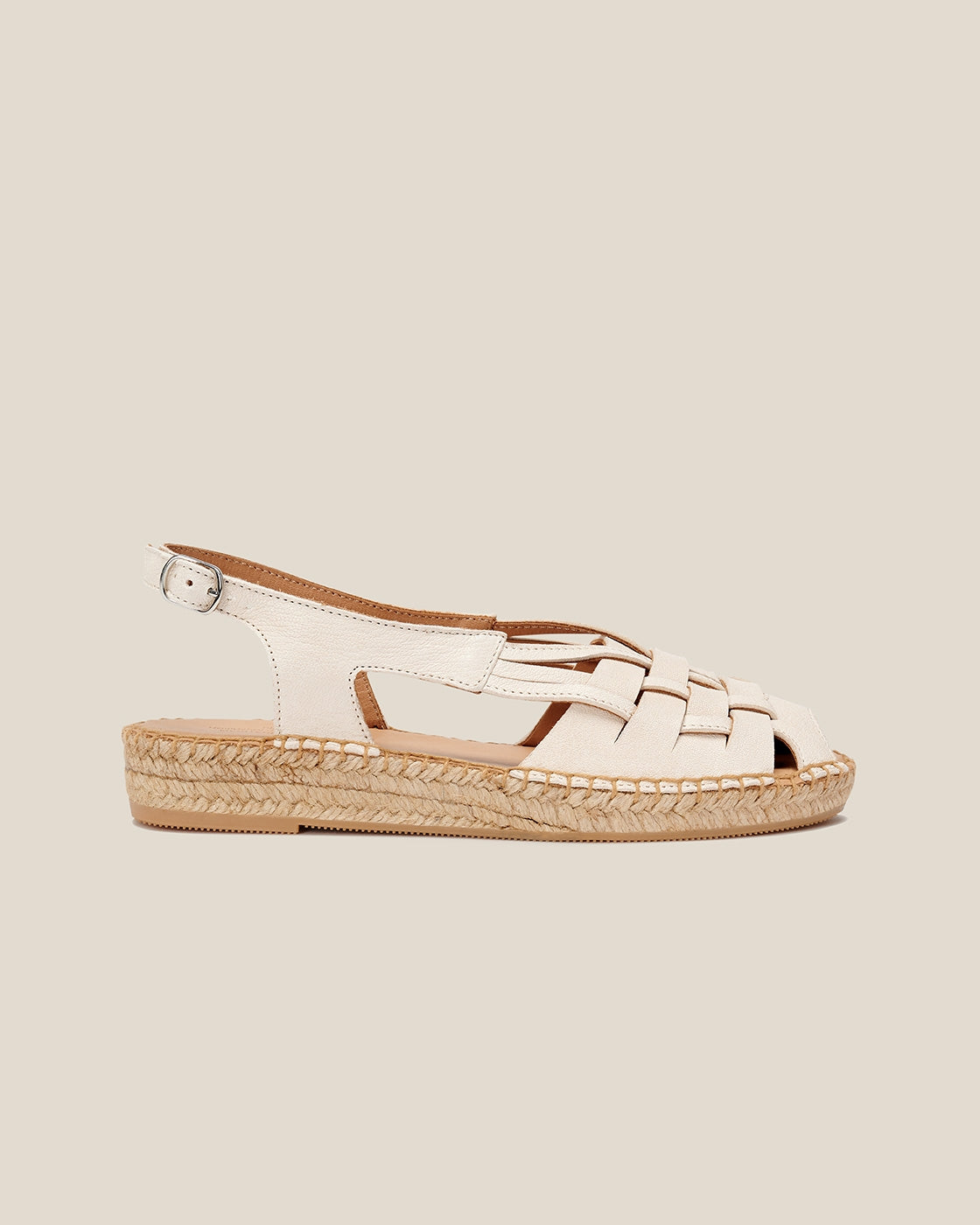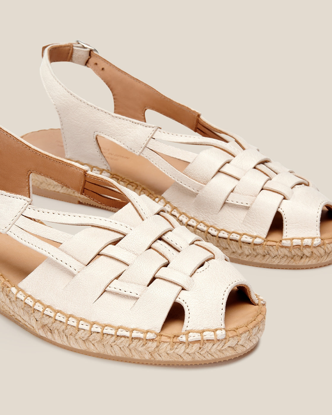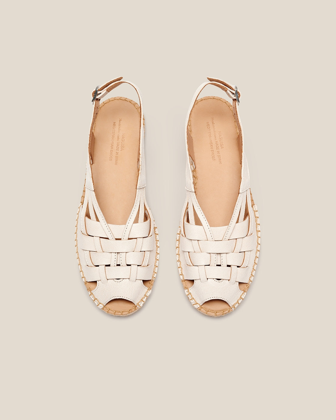 Etel is a sandal inspired by our classic cage-style sandal. Sheepskin leather uppers. Cowhide leather lining. The insole is cushioned with foam and lined with natural cowhide leather for better breathability. The curved sole is made of a single jute braid, a small wedge for increased comfort, and a non-slip rubber outsole. Total height of 3 cm.