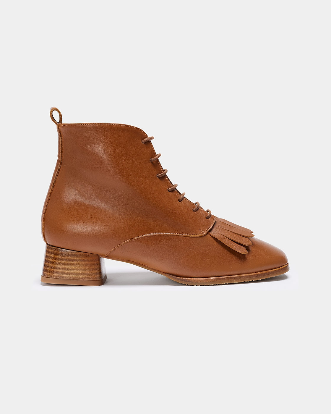 CAELUM is a blucher-style ankle boot with a low shaft. Fringe detail at the toe. Cowhide leather uppers and waxed cotton laces. The lining and insole are made of cowhide leather for better breathability. Heel height of 3 cm for enhanced back comfort.