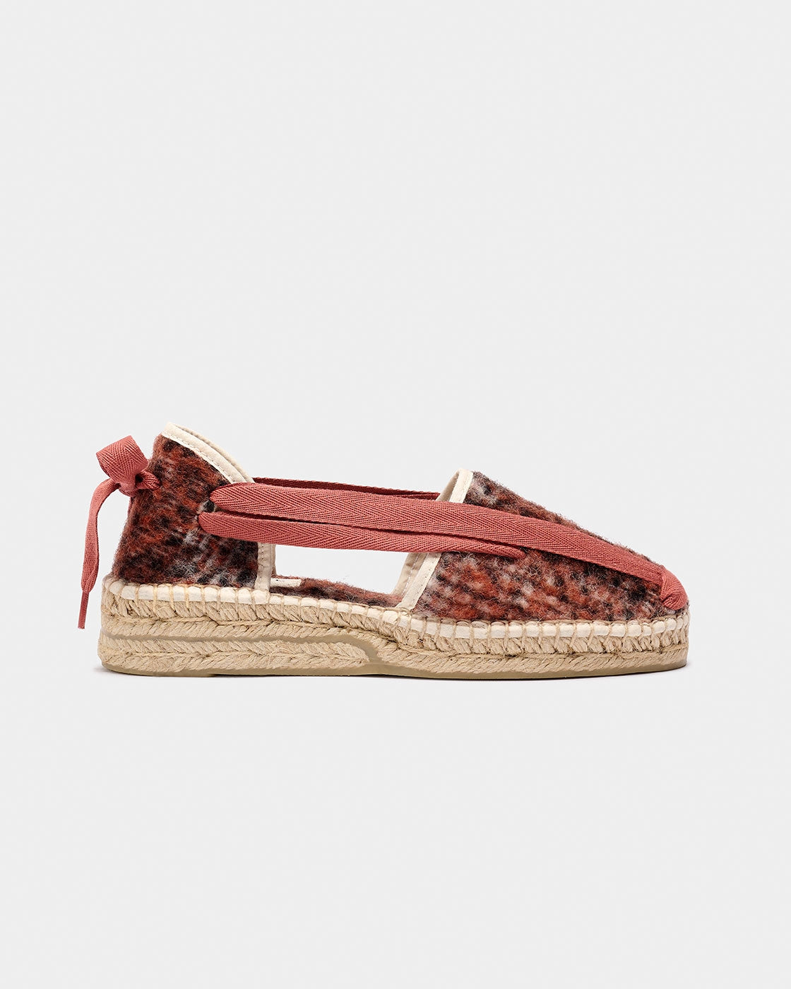 DOM is a version of our classic SOC style and is inspired by traditional "espardenyas." The upper and insole are made of natural wool with a fabric lining to ensure maximum comfort for your feet. Total height is 3.5 cm and features a small wedge heel to give your back the rest it deserves.