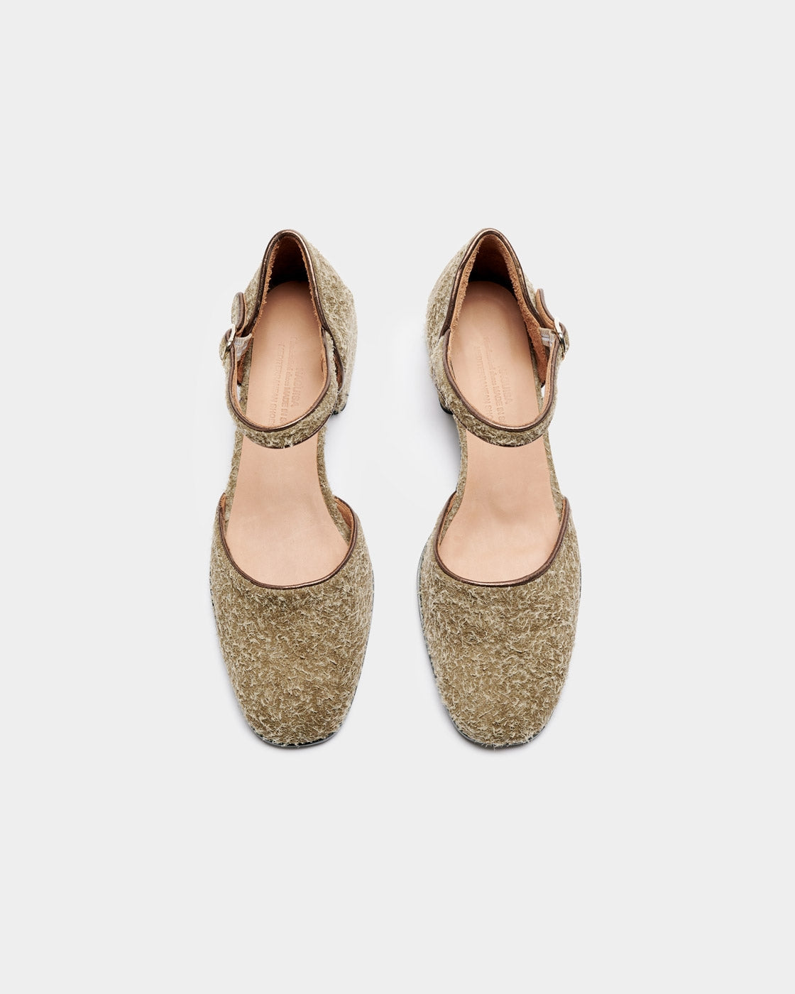 NESLA es un zapato de salón estilo DOrsay. El corte es de piel de serraje con textura con detalle de ribete metalizado. Forro de piel vacuno. Se ajusta al tobillo mediante una tira con cierre de hebilla. La planta es de piel vacuno para dejar transpirar mejor tu pie. La altura de tacón es de 2,5 cm, medido en la parte central del mismo y no atrás. El tacón es ancho para mayor comodidad.