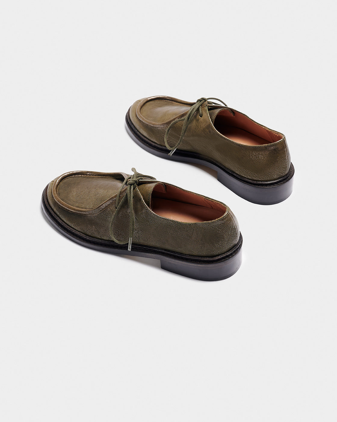 KHOV es un modelo tipo wallabee. El corte es de piel ovina metalizada. Cierre mediante cordones a tono del corte. Forro de piel vacuno. Plantilla extraíble con foam. Puntera redonda. Piso de suela y goma rayada con cerco con doble cosido al tono. La altura del piso es de 2,5cm para mayor comodidad de tu espalda.