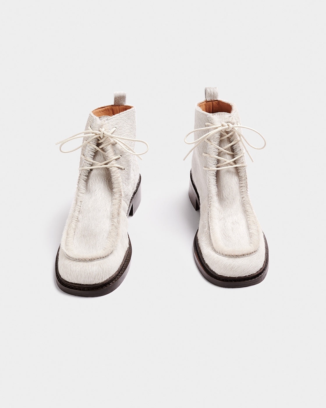 ERA es una bota tipo wallabee. El corte es de piel vacuno de pelo. Forro de piel vacuno. Puntera cuadrada. Piso de suela y goma rayada con cerco con doble cosido. La altura total es de 3,5 cm para mayor comodidad de tu espalda.