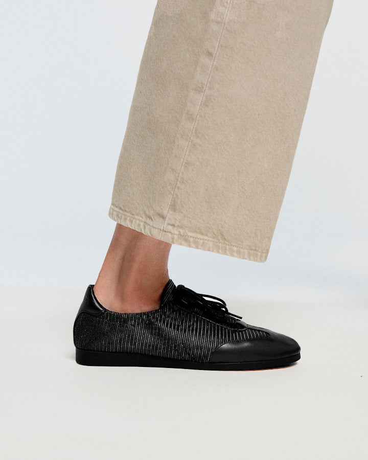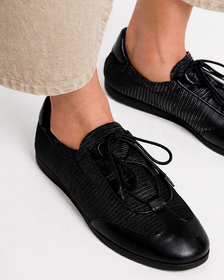 RALUCA는 다양한 소재를 조합하여 제작된 신발입니다. 갑피는 양가죽과 합성 메시 소재로 제작되었으며, 면 끈으로 고정됩니다. 안감은 패브릭 소재입니다. 깔창은 쿠션 처리되어 있으며 천연 소가죽으로 안감 처리되었습니다. 밑창은 버진 고무 소재로 제작되었으며, 웨지힐이 특징입니다. 둥근 앞코와 2cm 높이의 밑창을 갖추고 있습니다. 스페인에서 제작되었습니다.