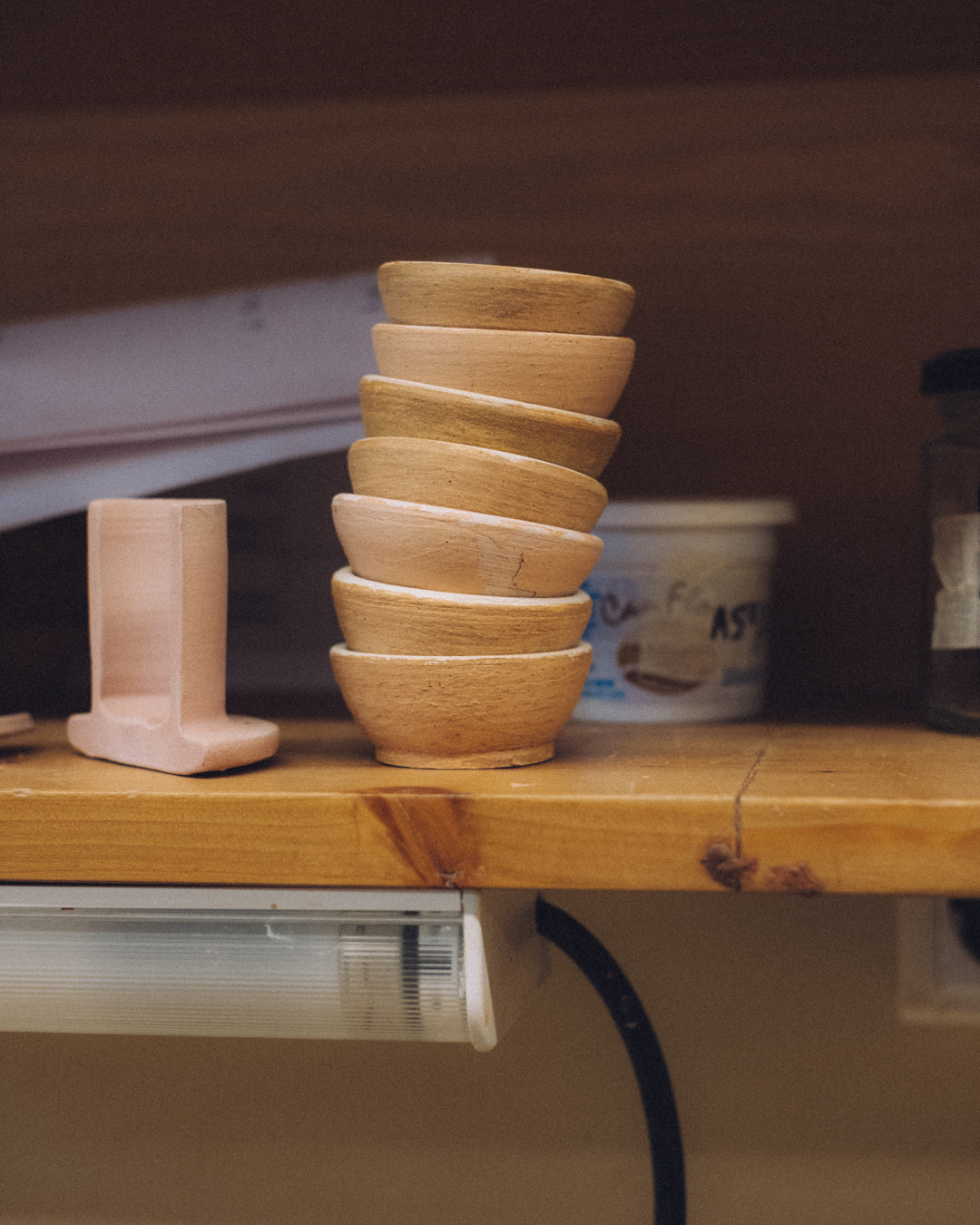 El primero es el aprendizaje, especialmente al aprender a tornear. Para mí es fundamental, porque entiendo el torno a través de la repetición, del desapego y de cortar las piezas por la mitad para poder entender los errores. Todo esto requiere muchísima paciencia. Y, como en mis clases conviven diferentes niveles, es muy reconfortante para ellas ver que todo el mundo ha pasado por el mismo proceso y que dominar el torno es posible.