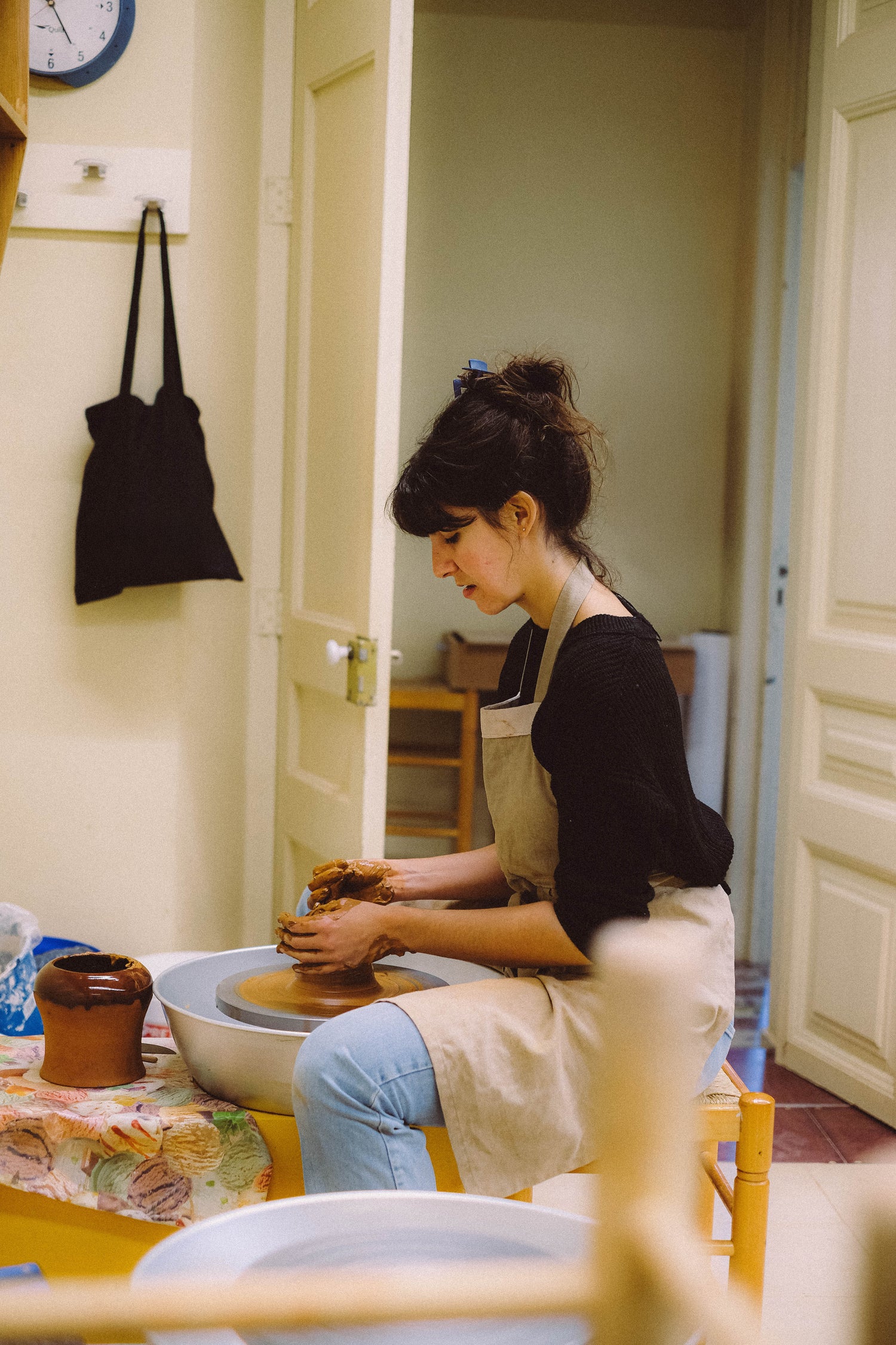 Por eso cada vez más gente se apunta a clases; cuando entran en contacto con el barro, se dan cuenta de hasta qué punto desconectan de su rutina y de su vida digital. No están acostumbradas a concentrarse en una sola cosa sin estímulos externos —y eso es precisamente lo que las atrapa.