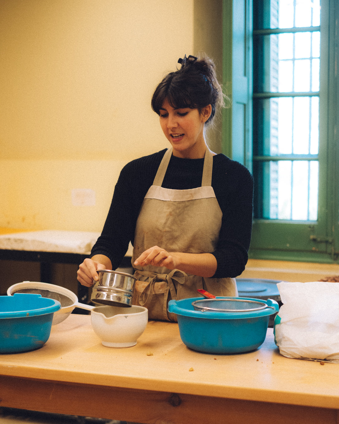 Lo que más me fascina es su versatilidad: me sirve tanto para tornear y construir piezas como para convertirla en un engobe o cocerla a alta temperatura hasta transformarla en un esmalte —y es justo en ese punto donde me encuentro ahora mismo, profundizando en esta investigación.