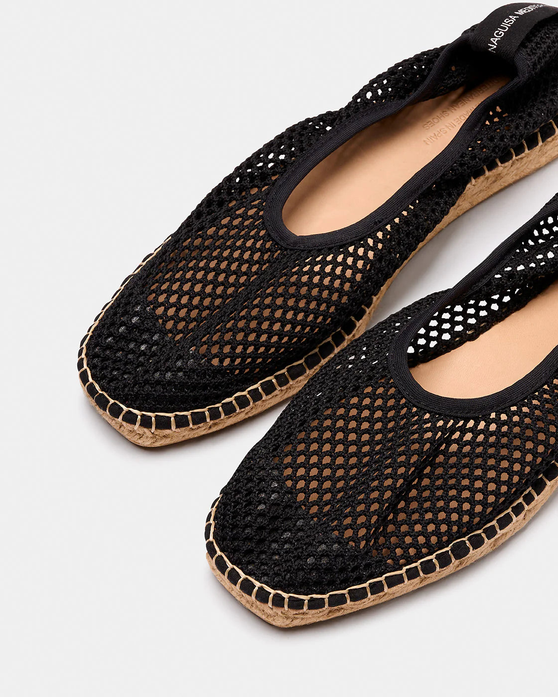 알리움은 신축성 있는 마감 처리가 돋보이는 클로즈드 토 펌프스입니다. 갑피는 메탈릭 소재에 면 안감을 덧대었습니다. 안창은 폼 쿠션을 사용했으며, 통기성을 위해 천연 소가죽 안감을 덧대었습니다. 사각 토의 밑창은 심플한 황마 브레이드, 편안한 착용감을 위한 작은 웨지 힐, 그리고 미끄러짐 방지 고무 밑창으로 제작되었습니다. 총 굽 높이는 3cm입니다. 스페인에서 제작되었습니다.