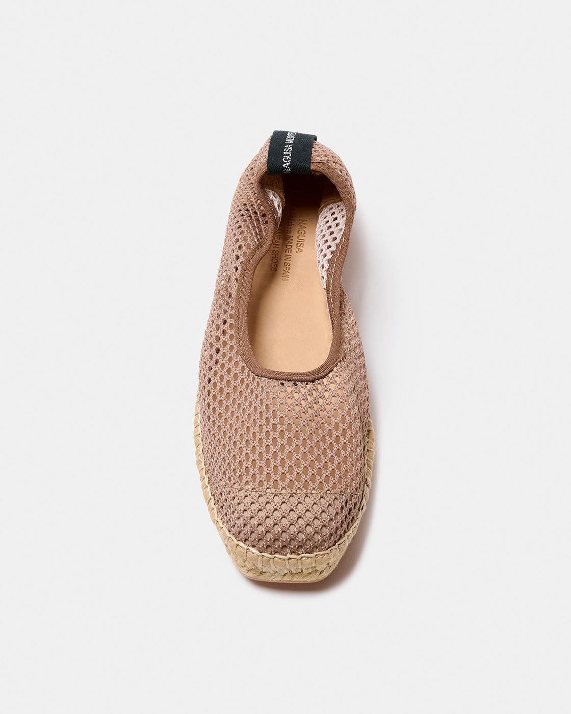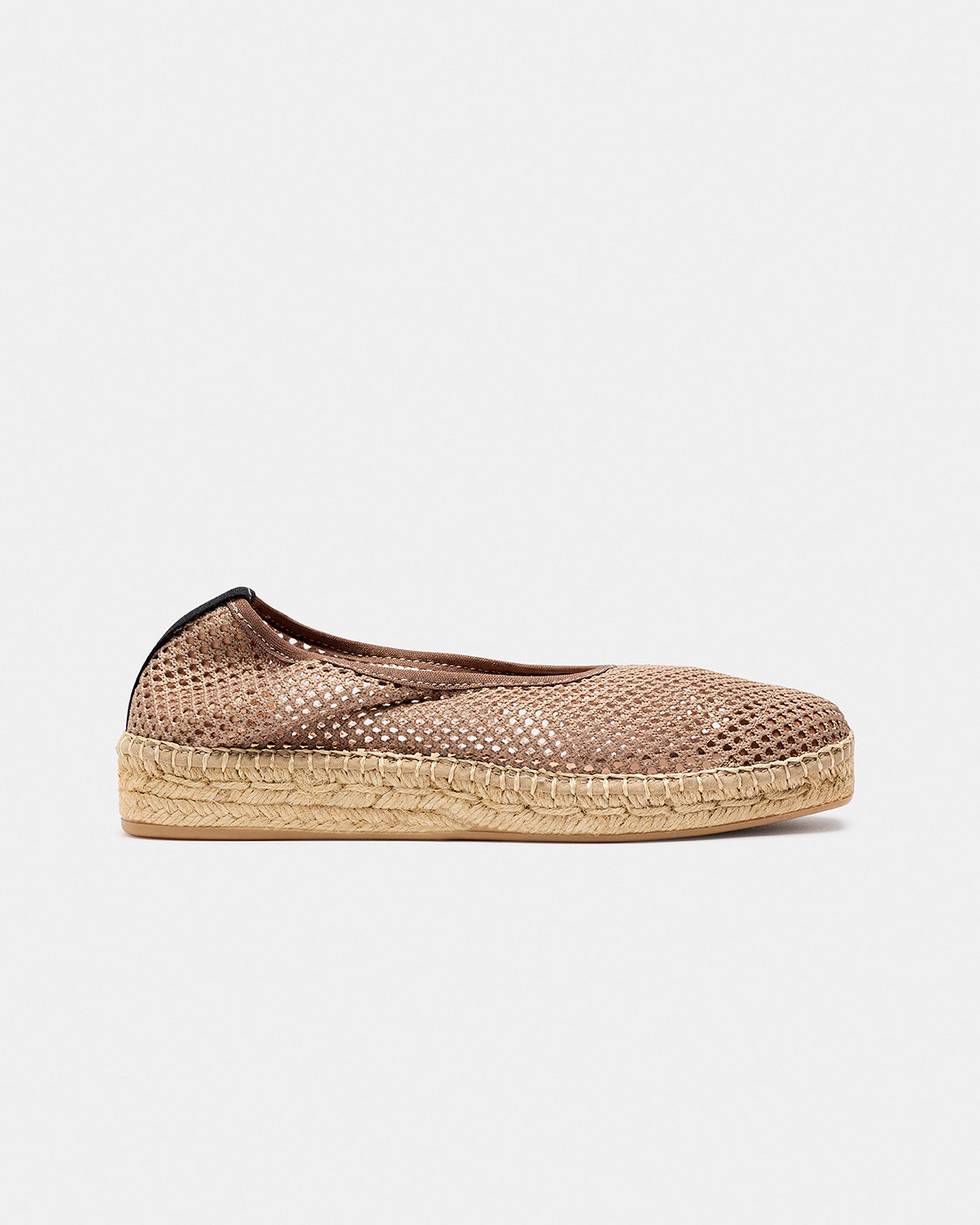 알리움은 신축성 있는 마감 처리가 돋보이는 클로즈드 토 펌프스입니다. 갑피는 메탈릭 소재에 면 안감을 덧대었습니다. 안창은 폼 쿠션을 사용했으며, 통기성을 위해 천연 소가죽 안감을 덧대었습니다. 사각 토의 밑창은 심플한 황마 브레이드, 편안한 착용감을 위한 작은 웨지 힐, 그리고 미끄러짐 방지 고무 밑창으로 제작되었습니다. 총 굽 높이는 3cm입니다. 스페인에서 제작되었습니다.