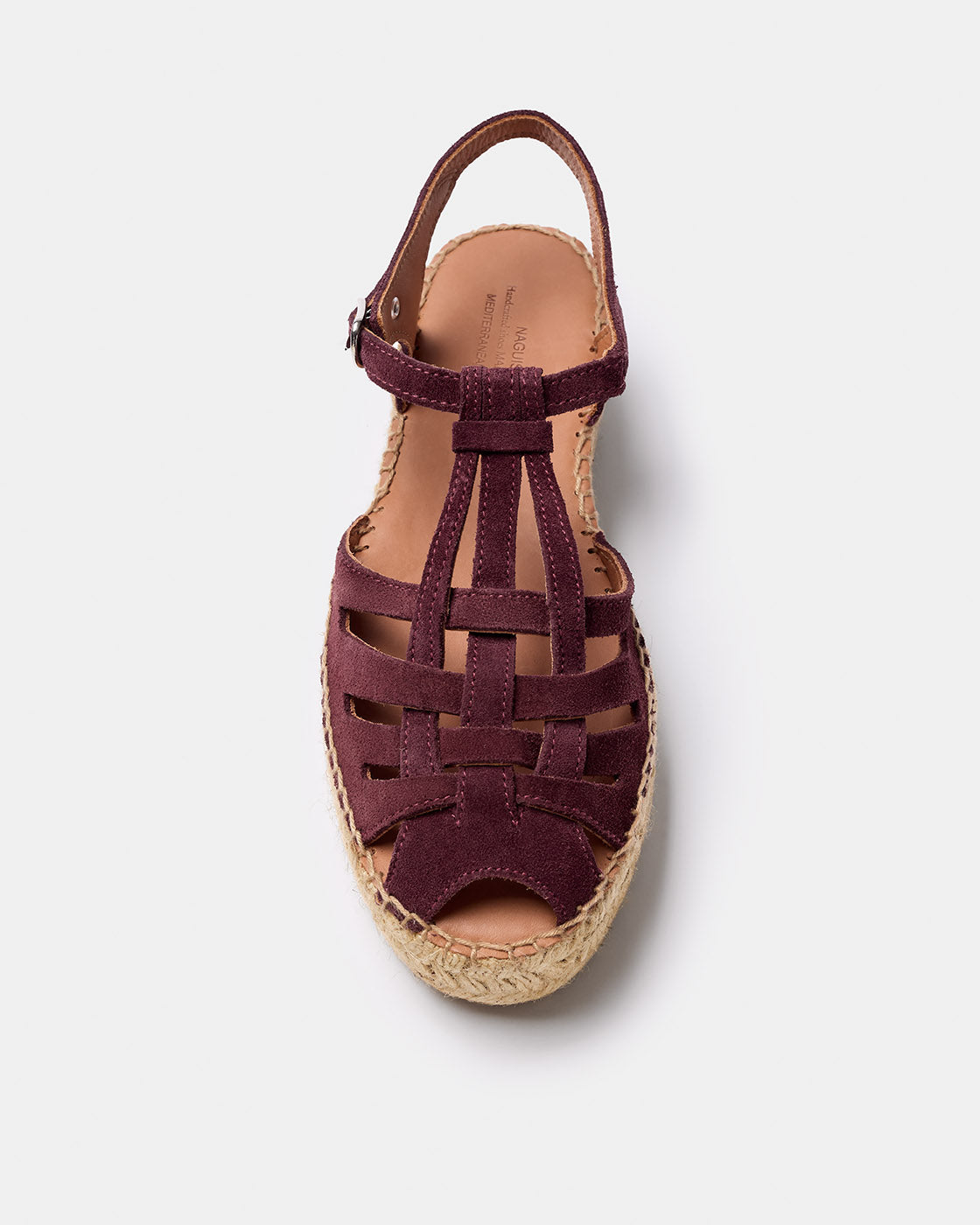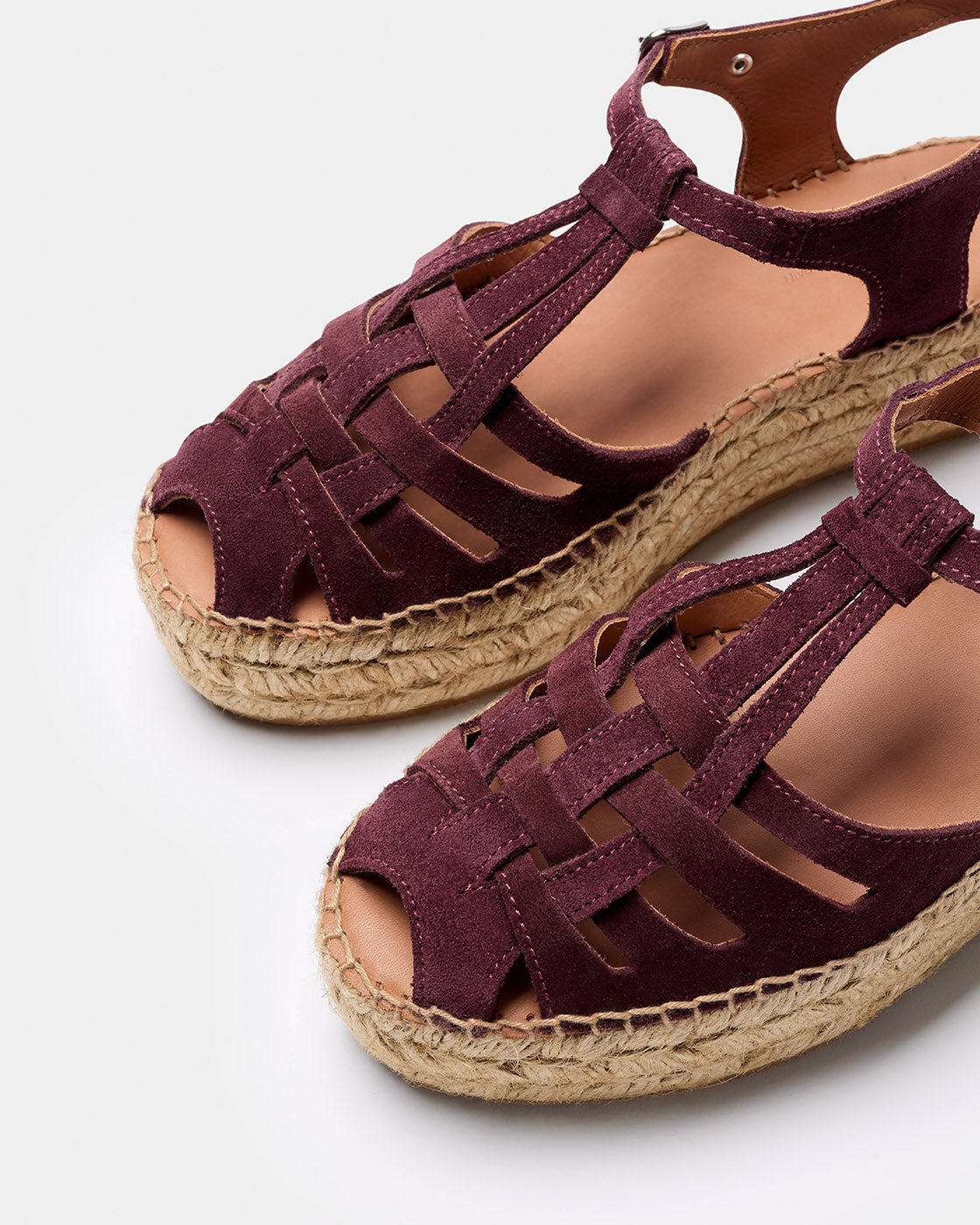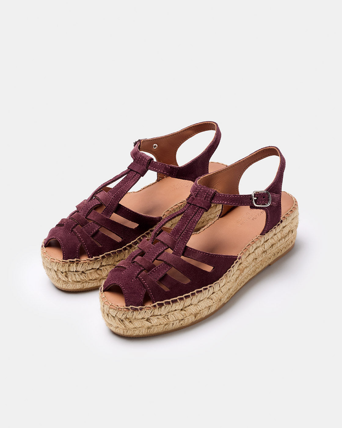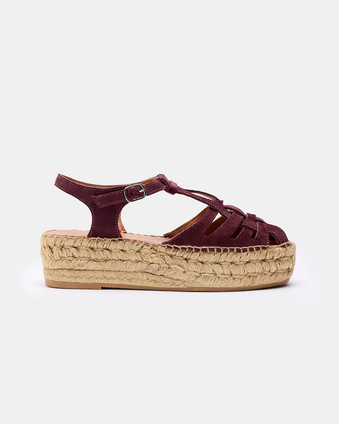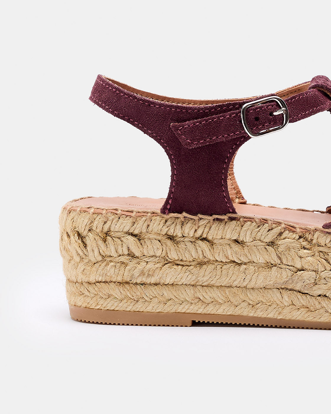 Bemol es un clásico de Naguisa, una sandalia cangrejera de tiras finas en T que se ajusta al tobillo con una hebilla. Sus cortes son de piel acabado charol. Forro de piel. La planta es acolchada con foam y forrada de piel vacuna natural para dejar transpirar mejor tu pie. El piso está hecho con doble trenza de yute, una pequeña cuña para mayor comodidad y suela de goma antideslizante. La altura total es de 5 cm. Fabricado en España.