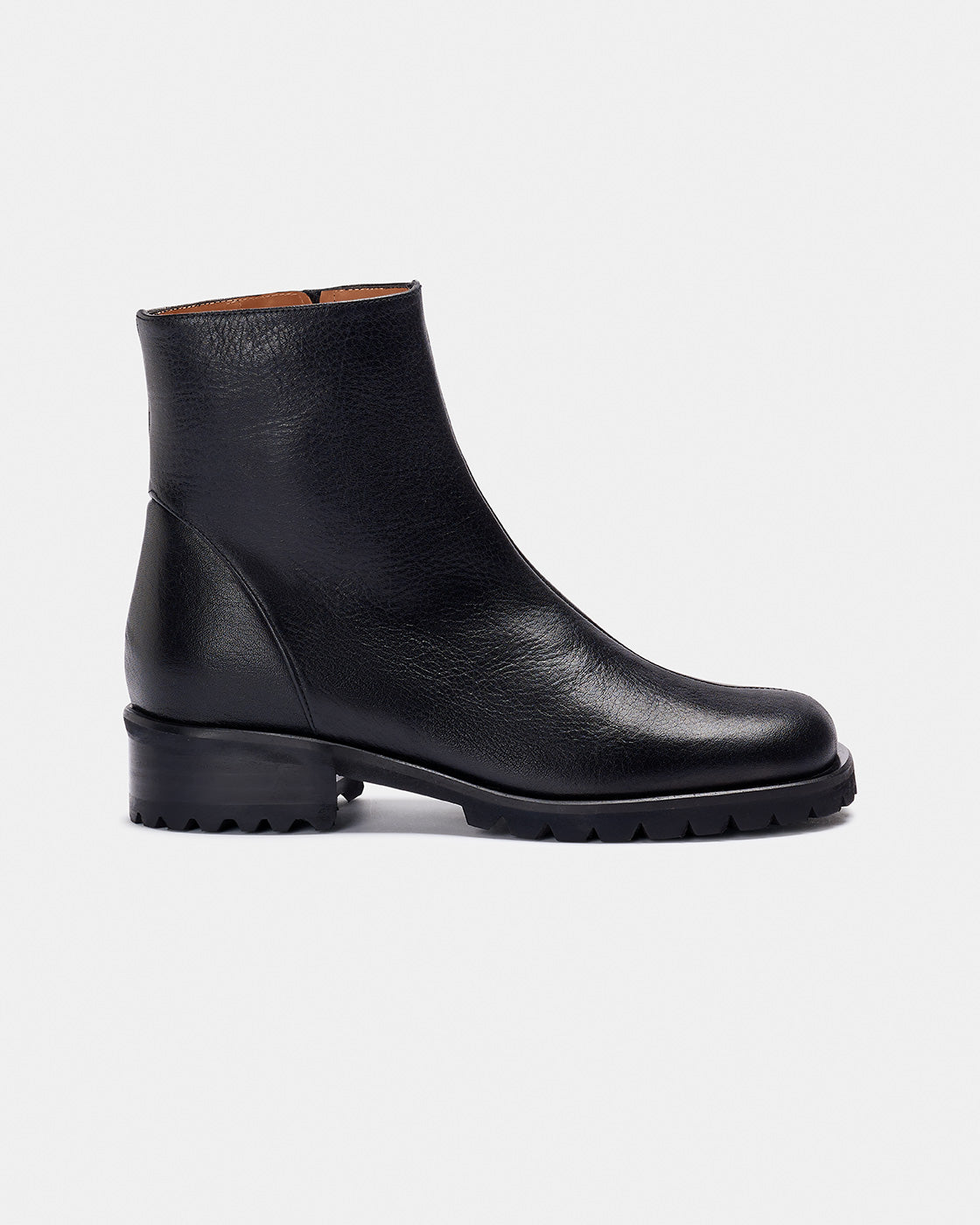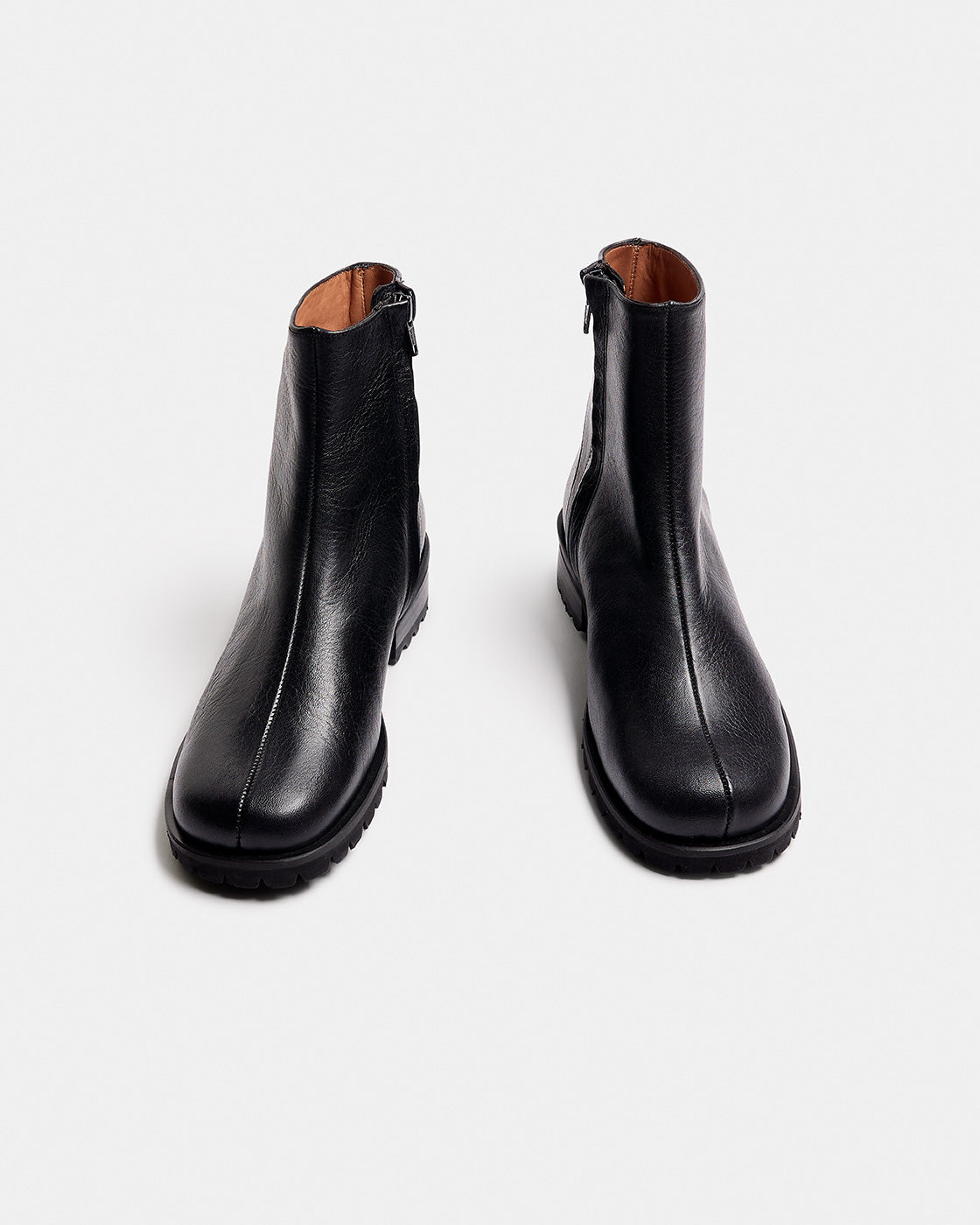 BINA는 내부 지퍼가 있는 부츠로, 데일리로 신기에 안성맞춤입니다. 갑피는 양가죽으로 제작되었으며, 소가죽 안감, 스퀘어 토, 그리고 더블 스티치 웰트가 있는 홈이 파인 고무 밑창이 특징입니다. 총 높이는 3.5cm로 더욱 편안한 착용감을 선사합니다.