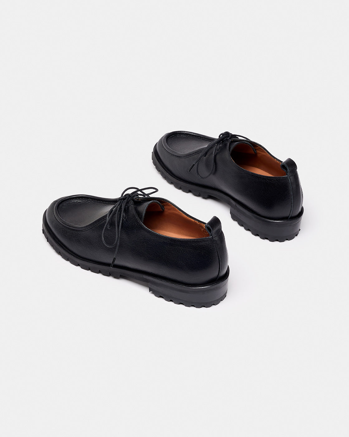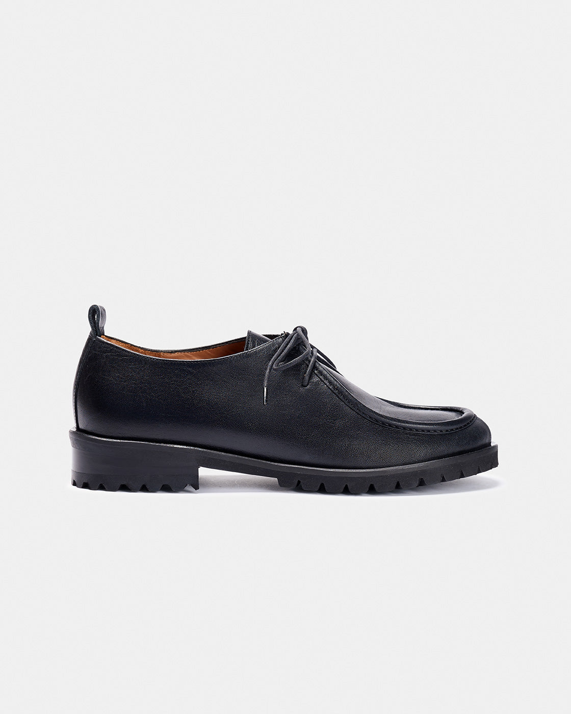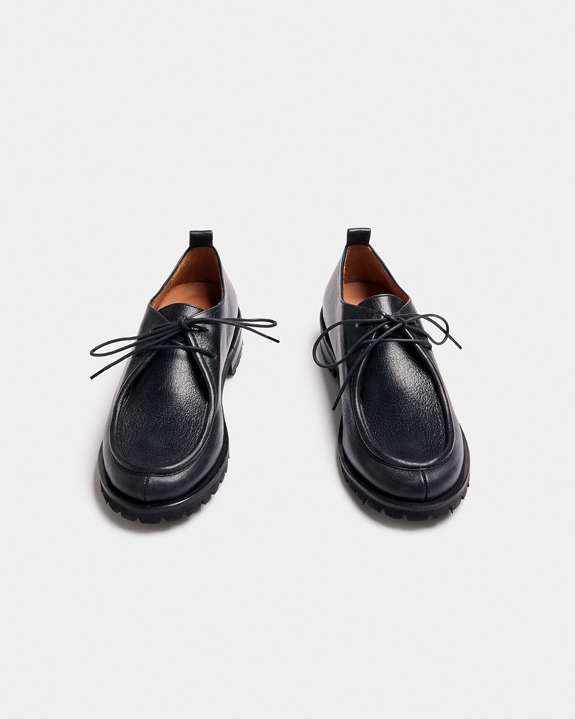 KHOV는 왈라비 스타일의 신발입니다. 메탈릭 양가죽 갑피, 같은 디자인의 레이스업 클로저, 소가죽 안감, 탈부착 가능한 폼 깔창, 둥근 앞코, 미끄럼 방지 고무 밑창이 특징입니다. 3cm의 높은 굽 높이가 허리를 더욱 편안하게 감싸줍니다.