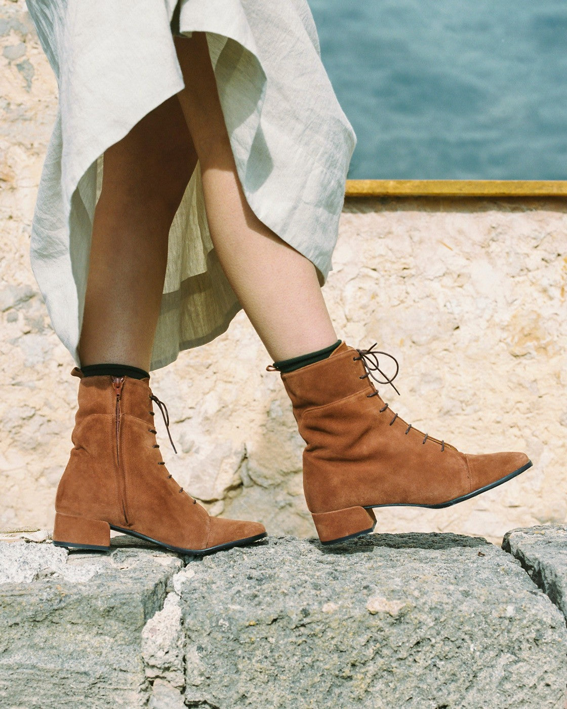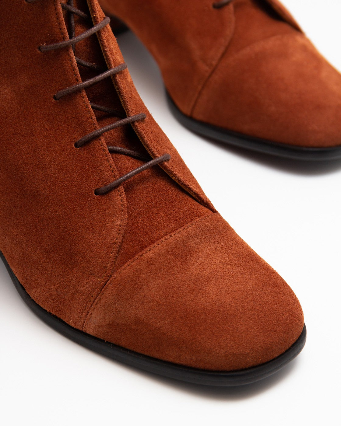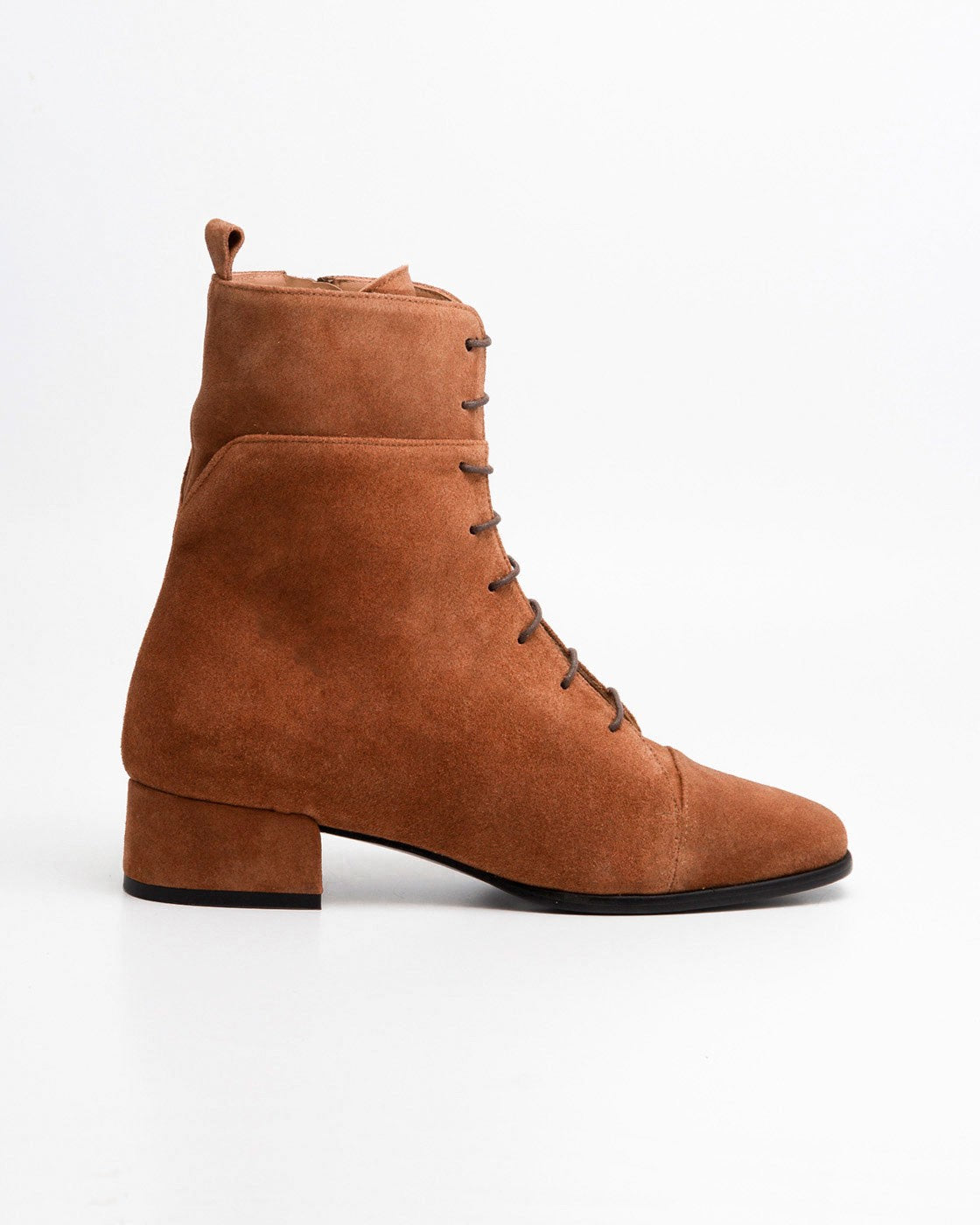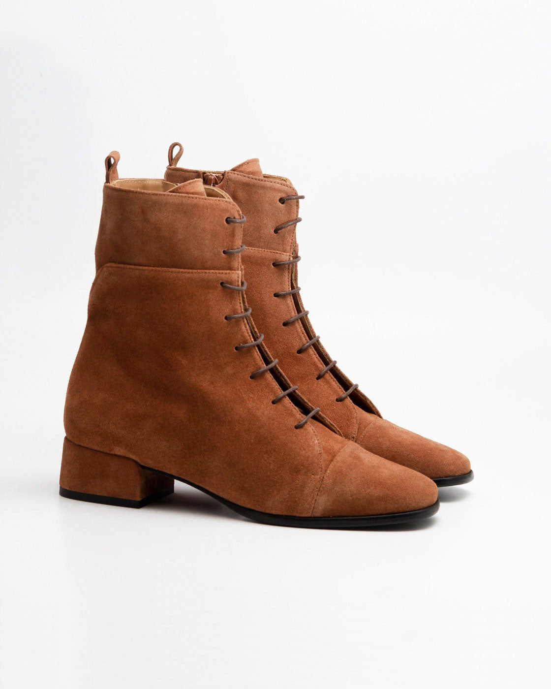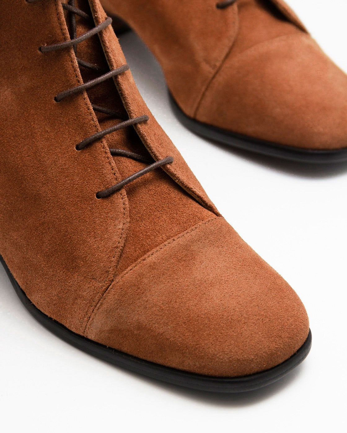 Buran es un botín de tacón y caña media. Sus cortes en combinación de colores son en serraje engrasado. Cierre mediante cordones. Puntera cuadrada. El forro y la planta son de piel vacuno para dejar transpirar mejor tu pie. La altura real del tacón es de 3 cm.