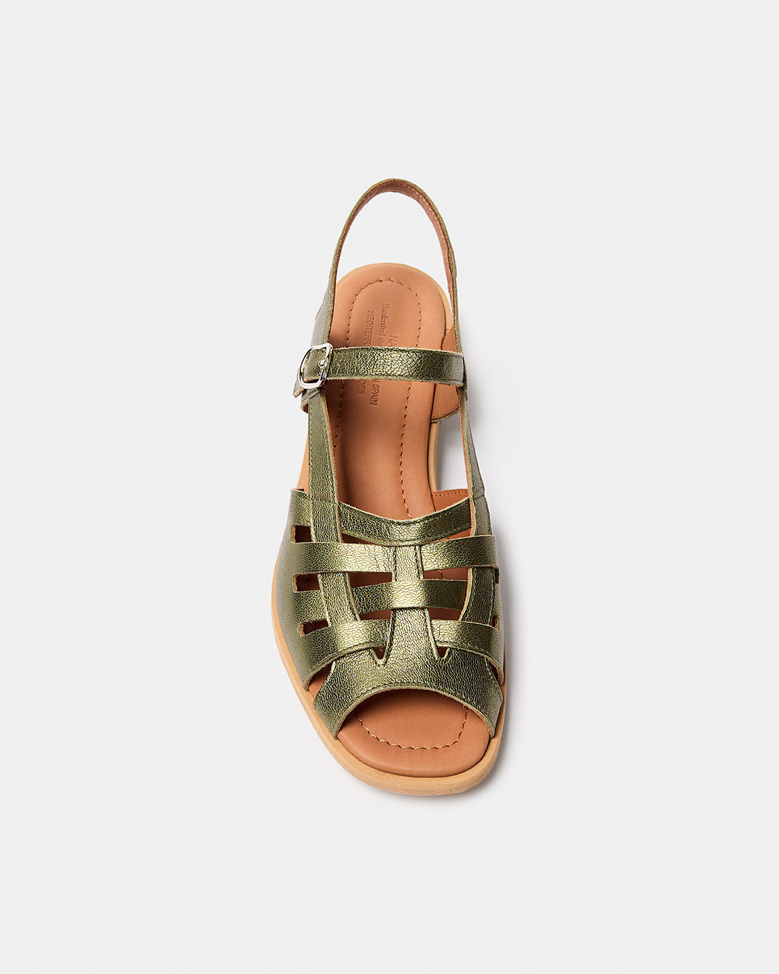 Manto es una sandalia estilo cangrejera, destalonada y con cierre de hebilla lateral. Los cortes son de piel de cabra con acabado metalizado y el forro de piel vacuna. La planta es acolchada con foam y forrada de piel para dejar transpirar mejor tu pie. Piso corrido de cuero y patín de goma antideslizante. La altura de tacón es de 2 cm, medido en la parte central del mismo y no atrás. El tacón es ancho para mayor comodidad.