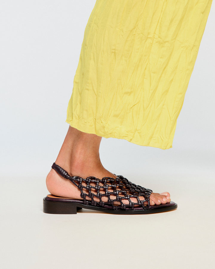 Mogan es una sandalia de punta abierta con trenzado de nudos hechos a mano y tira elastica para ajustar al talón. Cortes de piel de cabra Forro de piel de cabra. La planta es acolchada y forrada de piel vacuna para dejar transpirar mejor tu pie. Suela de cuero con cerco y tacón. La altura de tacón es de 2,5 cm. El tacón es ancho para mayor comodidad. Fabricado en España.
