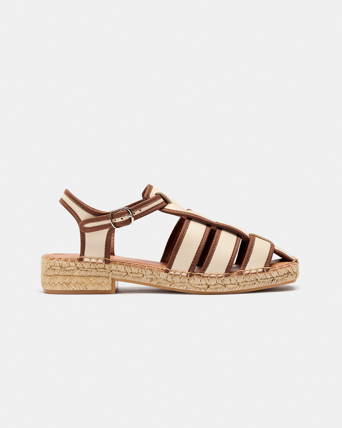 Sativa es una alpargata tipo cangrejera con puntera cerrada. Los cortes son en piel vacuno con detalle de ribete en contraste de color. Cierre con hebilla lateral. Forro de piel. La planta es acolchada con foam y forrada de piel vacuna natural para dejar transpirar mejor tu pie. La suela, de puntera cuadrada, está hecha con una trenza sencilla de yute. Con un pequeño tacón y suela de goma antideslizante. La altura total es de 3,5 cm. Fabricado en España.